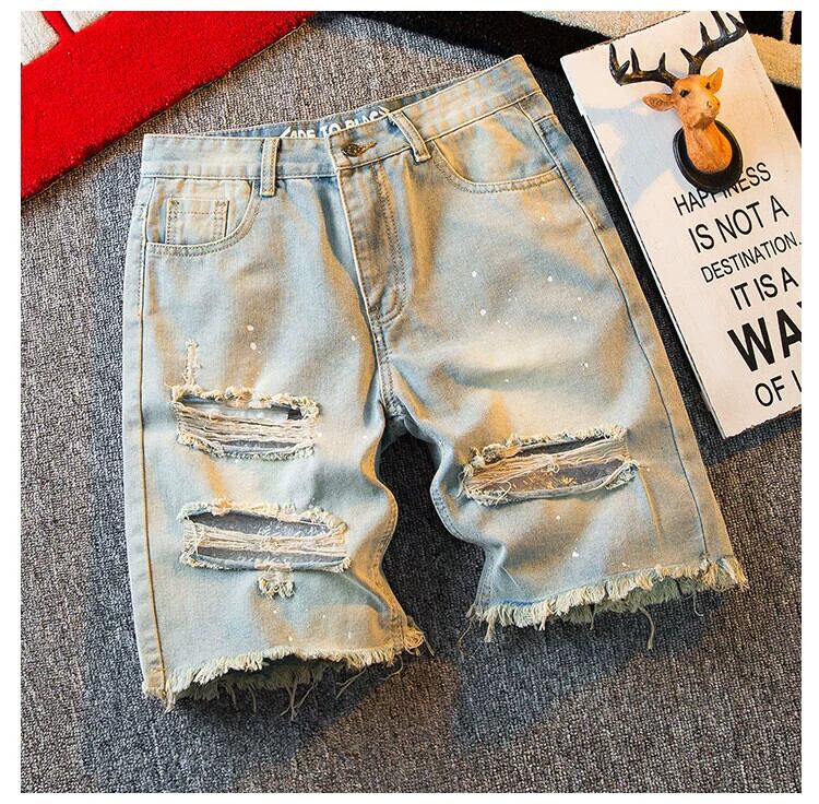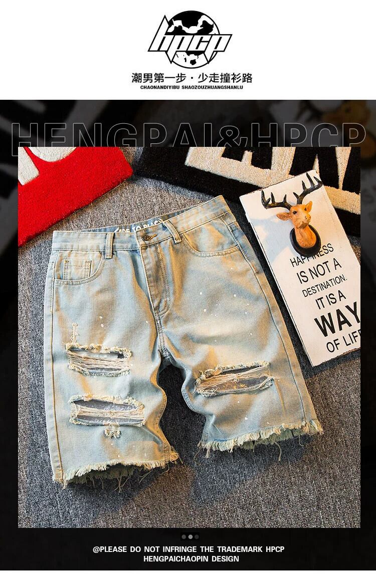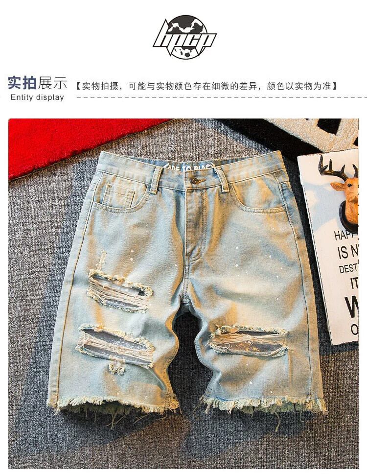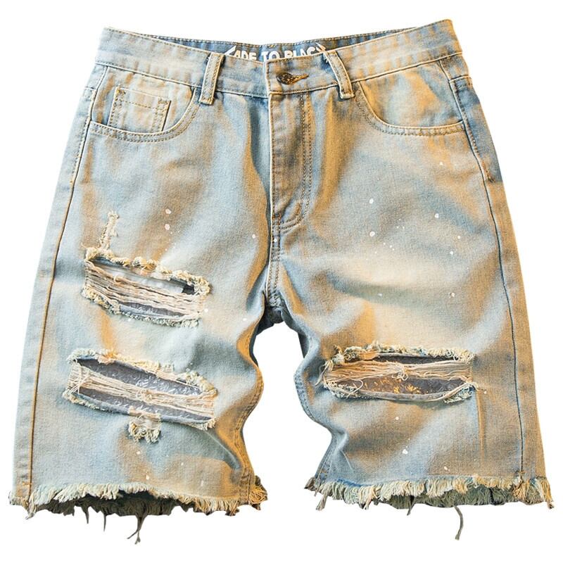 HPCP スプラッシュインクイエローマッドカラーリップドパンツメンズショートパンツトレンディなブランドインハイストリートデニム 5 分パンツルーズカジュアルパンツ レッド ショーツ ブルマー 33819543708258