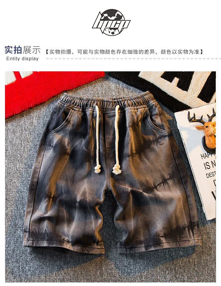 HPCP アメリカン タイダイ ヴィンテージ レトロ デニム ショート パンツ メンズ 夏 薄手 ゆったり トレンド ブランド ハイストリート 5分丈 ミッドパンツ サマー 夏物 ショーツ ブルマー ビンテージ 3381965836368921