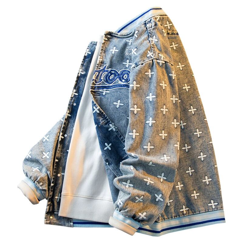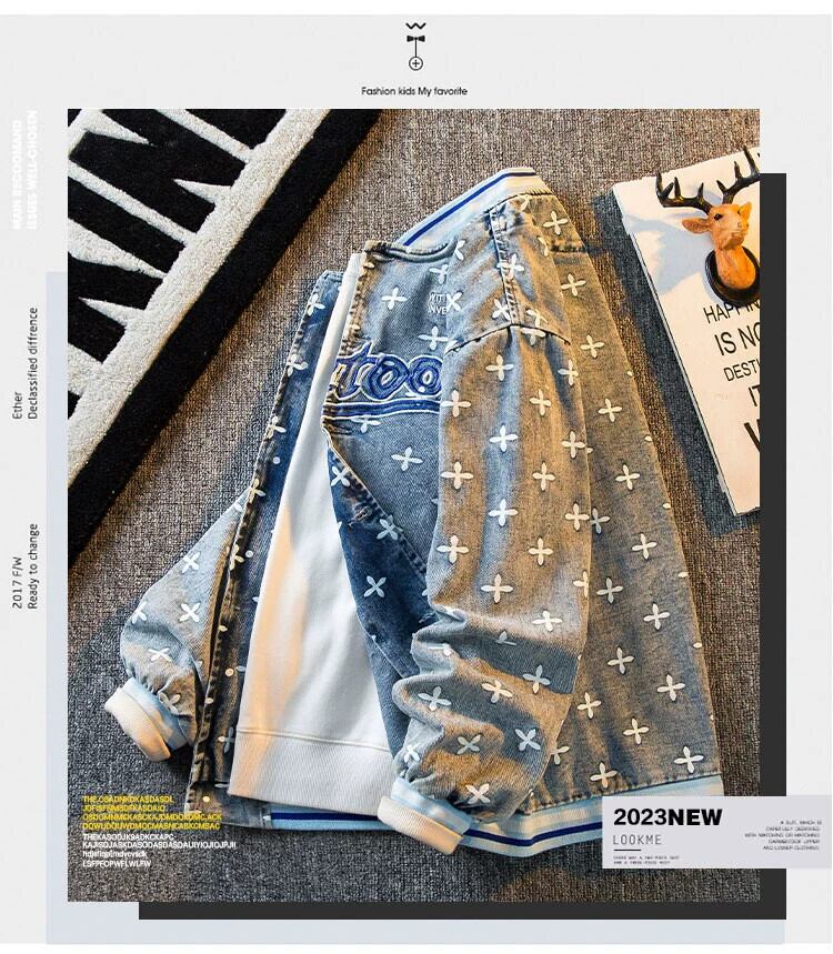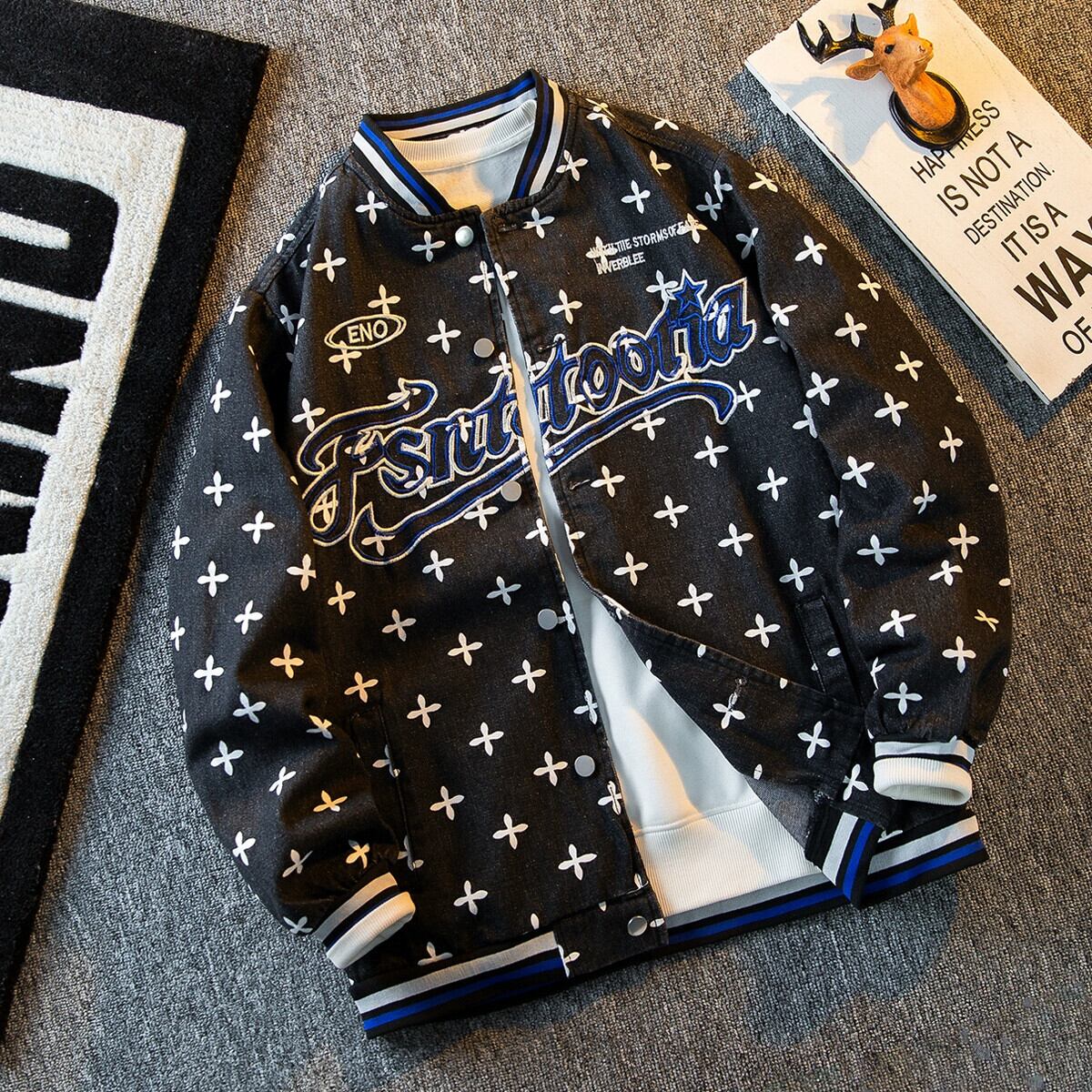 HPCP アメリカンレトロな雰囲気刺繍文字デニム野球スーツメンズ春と秋のハンサムなハイストリートファッションブランドジャケット レッド スプリング 春物 オータム 秋物 3381960943605951