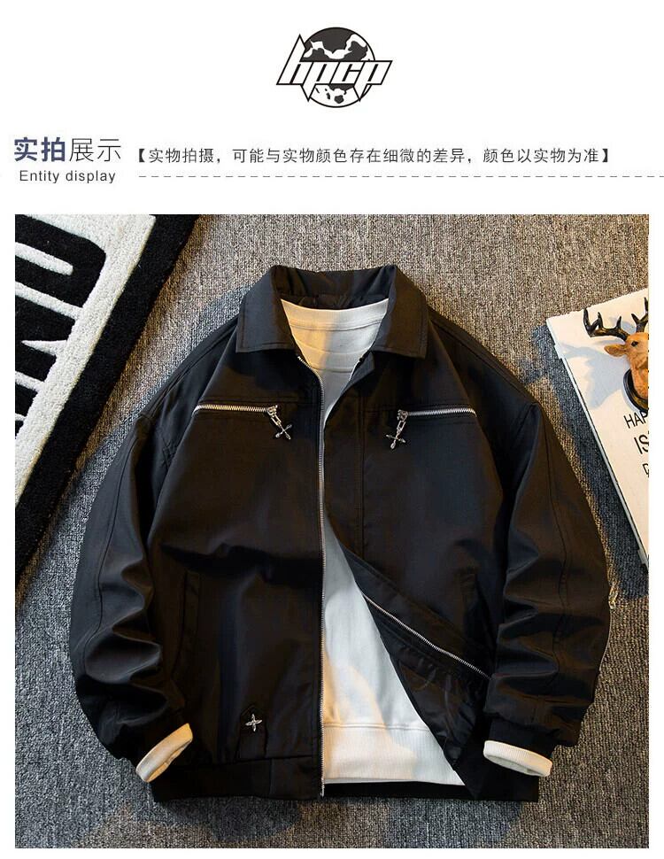 HPCP アメリカンな雰囲気のレトロなジッパーデザインジャケットメンズ春と秋のトレンディなブランドインハイストリートルーズラペルジャケット スプリング 春物 オータム 秋物 3381915089006940