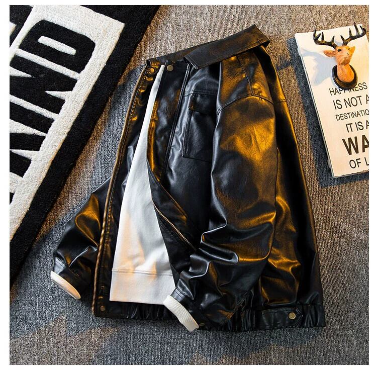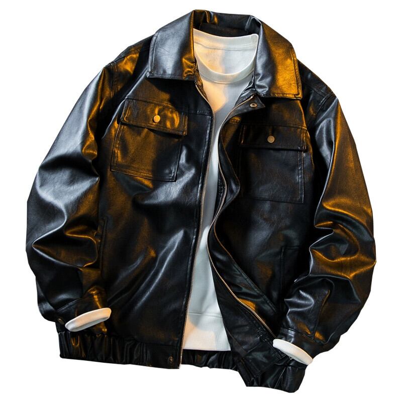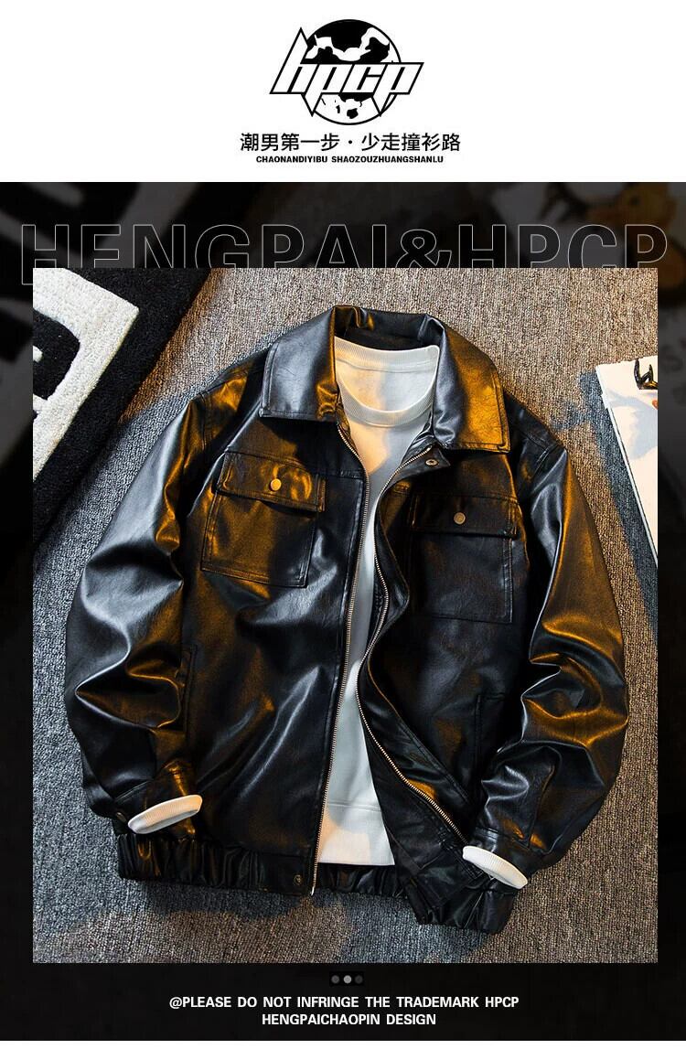 HPCP 秋アメリカンレトロソリッドカラーレザーメンズジャケットトレンディなブランドハイエンドメンズ防風オートバイ Pu レザージャケット オータム 秋物 3381962758963686