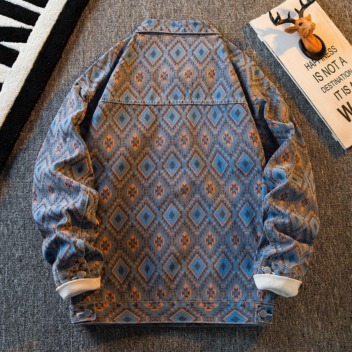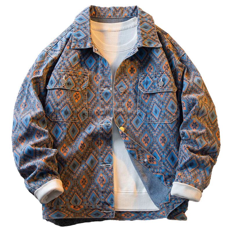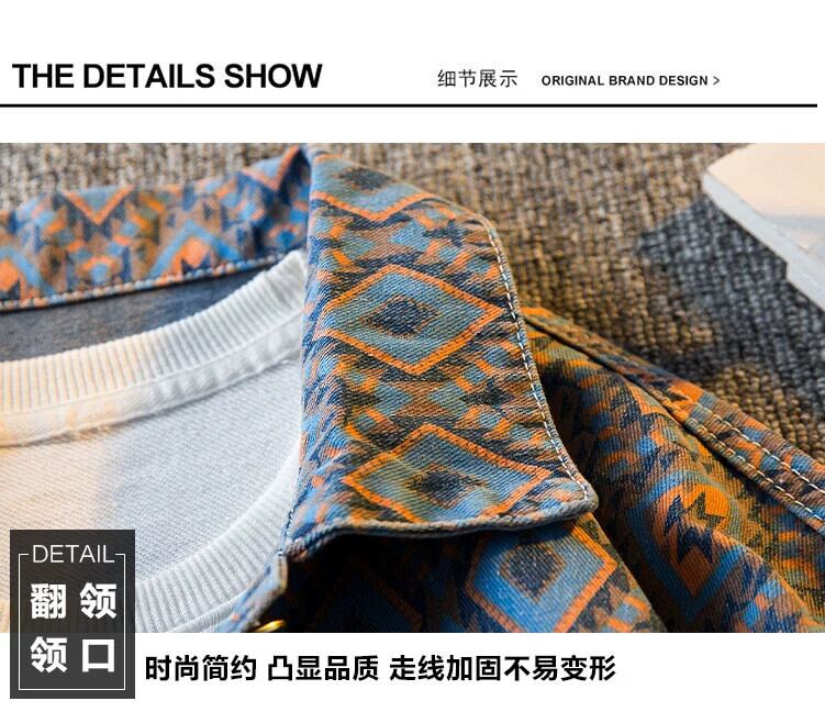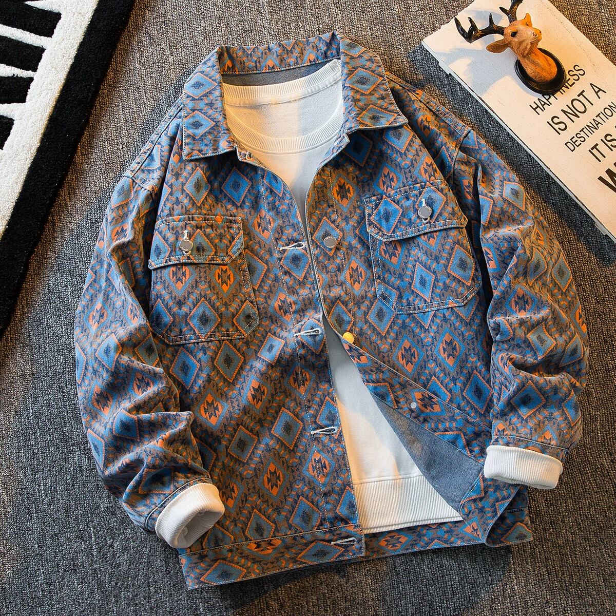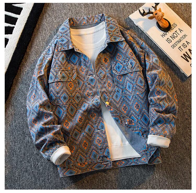 HPCP エスニックスタイル菱形デニムジャケットメンズ春と秋のハイエンドトレンドブランドチェック柄メンズハンサムカジュアルジャケット スプリング 春物 オータム 秋物 3381921271693851