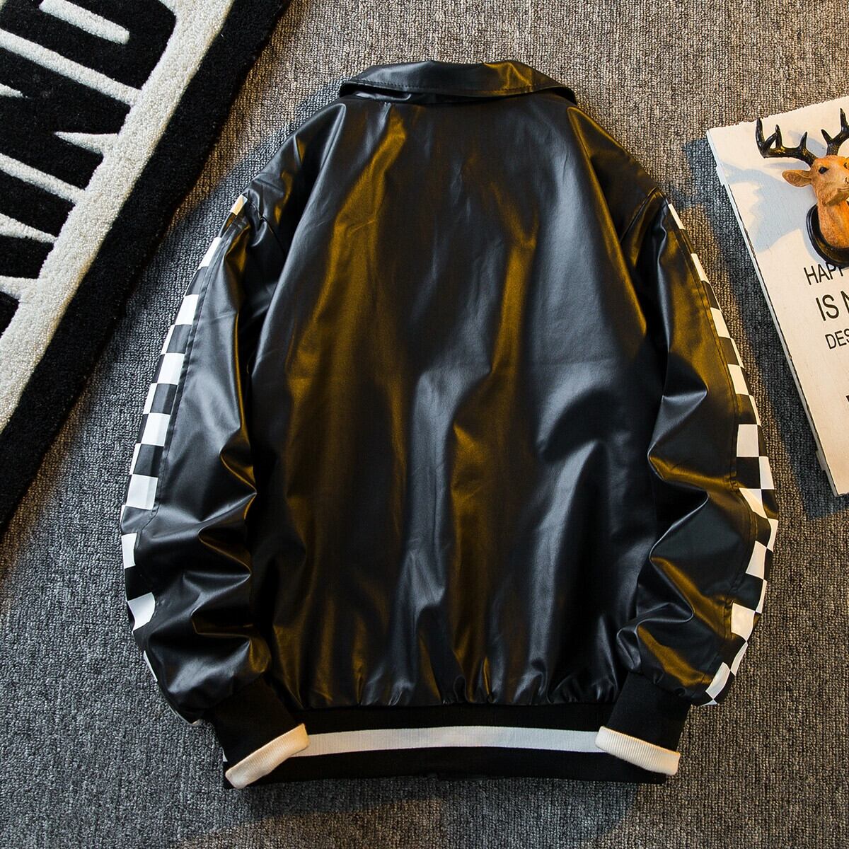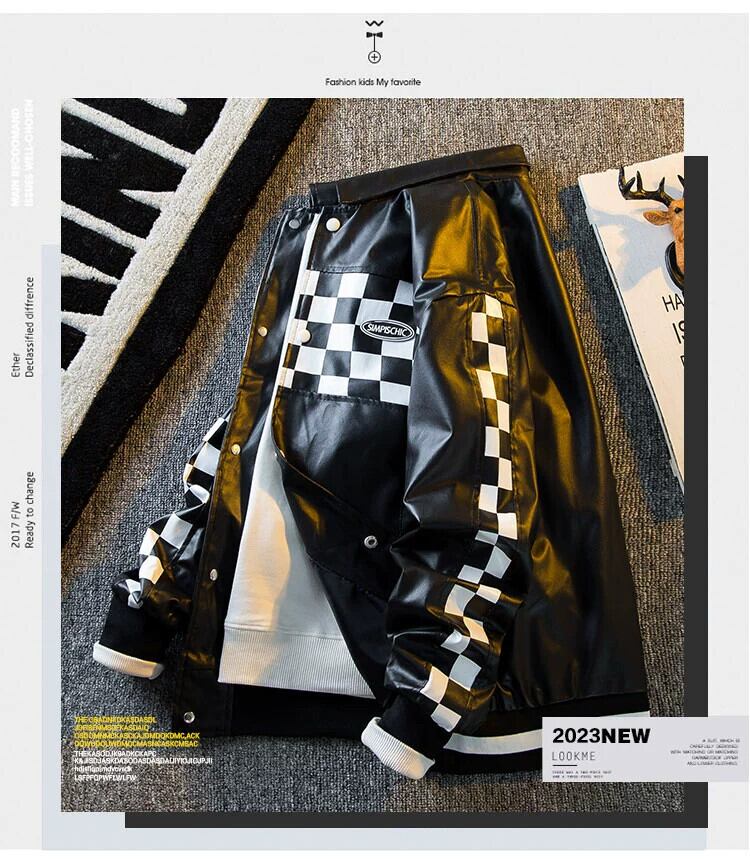 HPCP アメリカンヴィンテージレトロスプライシングチェッカーボードレザージャケットメンズトレンディなブランドオートバイラペルジャケットジャケット男性 ビンテージ 3381920334217280