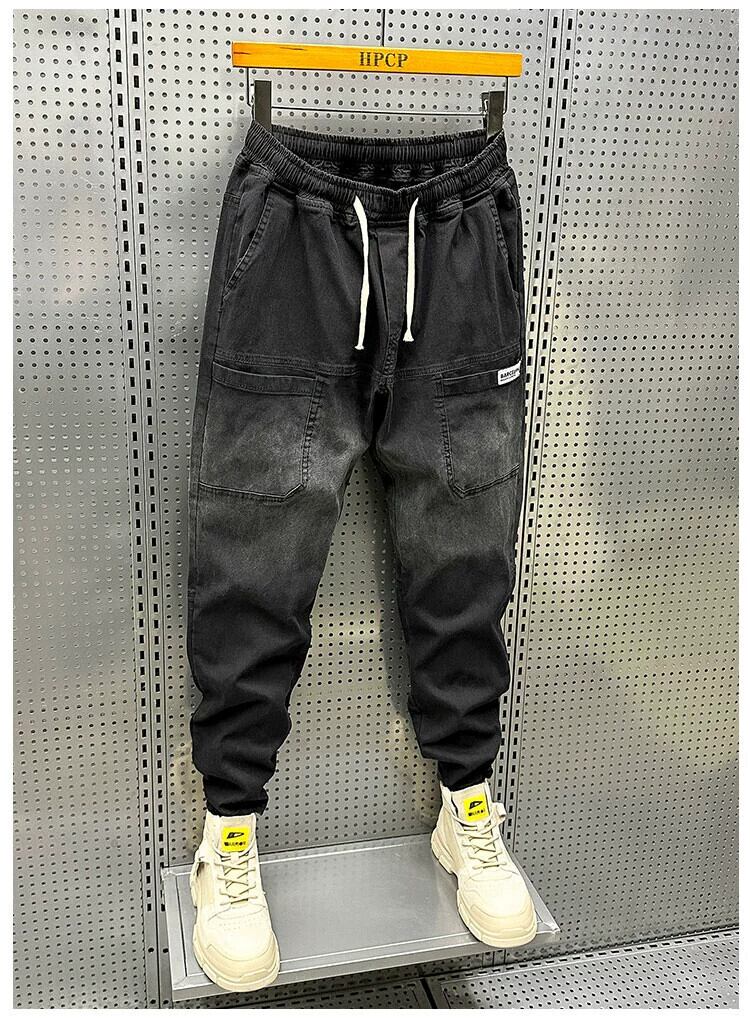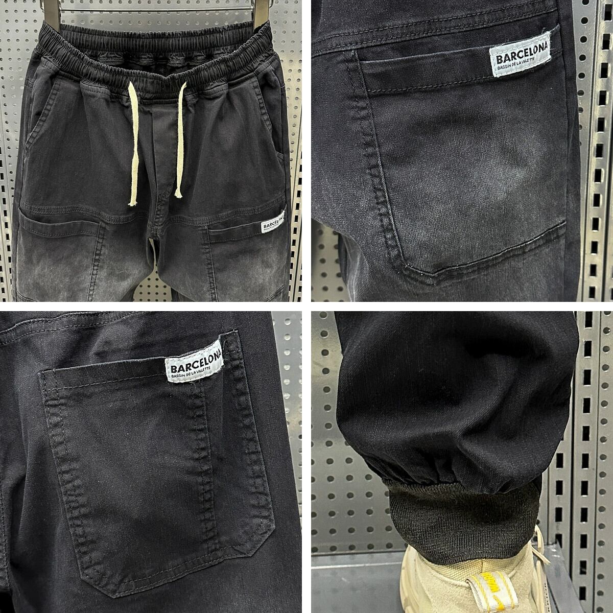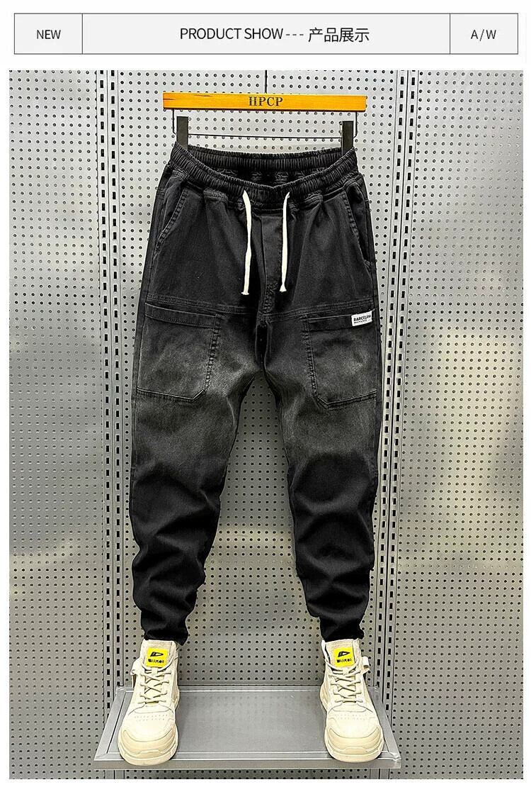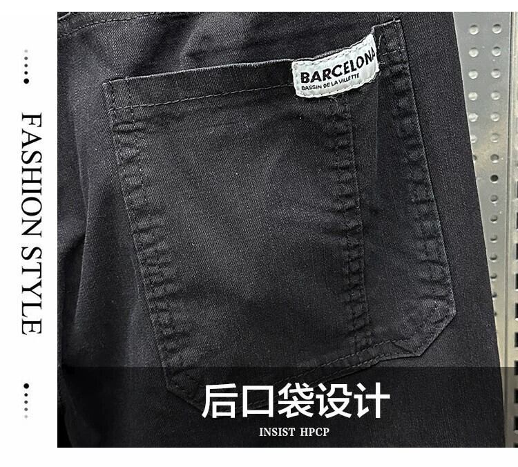 HPCP 秋黒ウエストゴム生ジーンズメンズ有能作業服ハンサム小足スリム 9 点パンツ男性 ブラック エラスティック 伸縮 オータム 秋物 3381959797687590