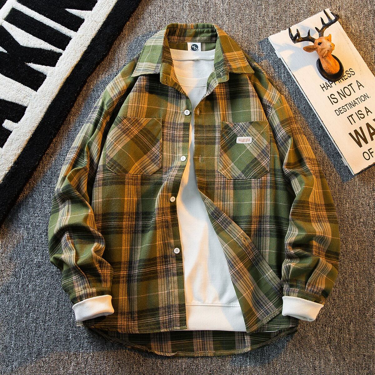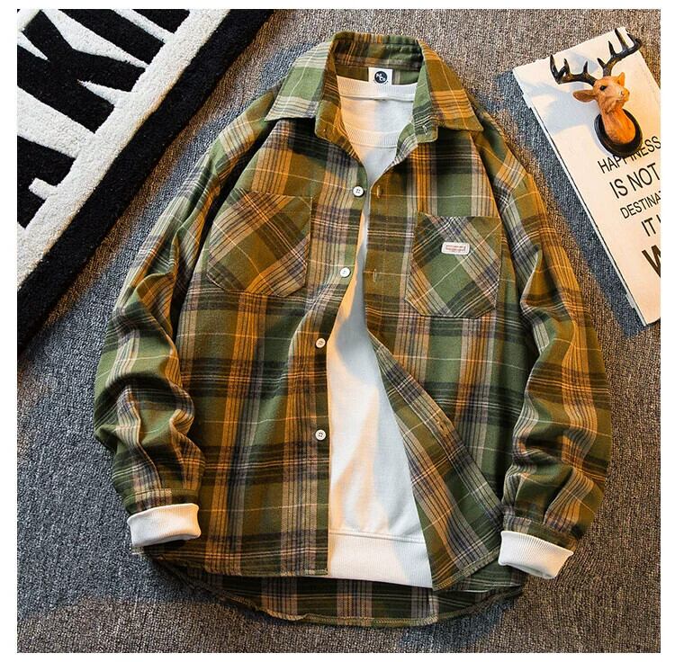 HPCP アメリカのレトロなチェック柄シャツメンズ長袖秋の新しい緩いトレンディなブランドインハイストリートカジュアルシャツ男性 ロング オータム 秋物 3381948808797859