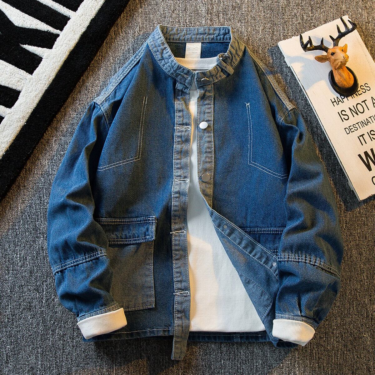 HPCP マウンテンカラーデニムジャケットメンズ春と秋のスプライシングハンサムトレンディなブランドメンズカジュアルジャケットトップス秋服 スプリング 春物 オータム 秋物 3381995057566027