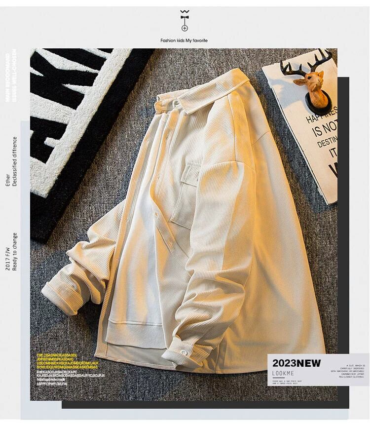 HPCP 秋薄い長袖コーデュロイシャツ男性 ese レトロトレンディなブランドハイエンドルーズカジュアルシャツ男性 ロング オータム 秋物 338199044359605