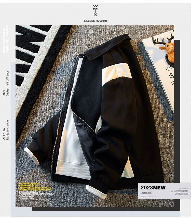 HPCP アメリカ対照的なカラースプライシングカジュアルジャケットメンズ秋ルーズトレンディなラペル野球ユニムジッパーカーディガンジャケット オータム 秋物 3381942338825654