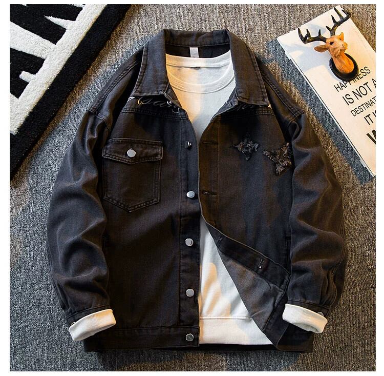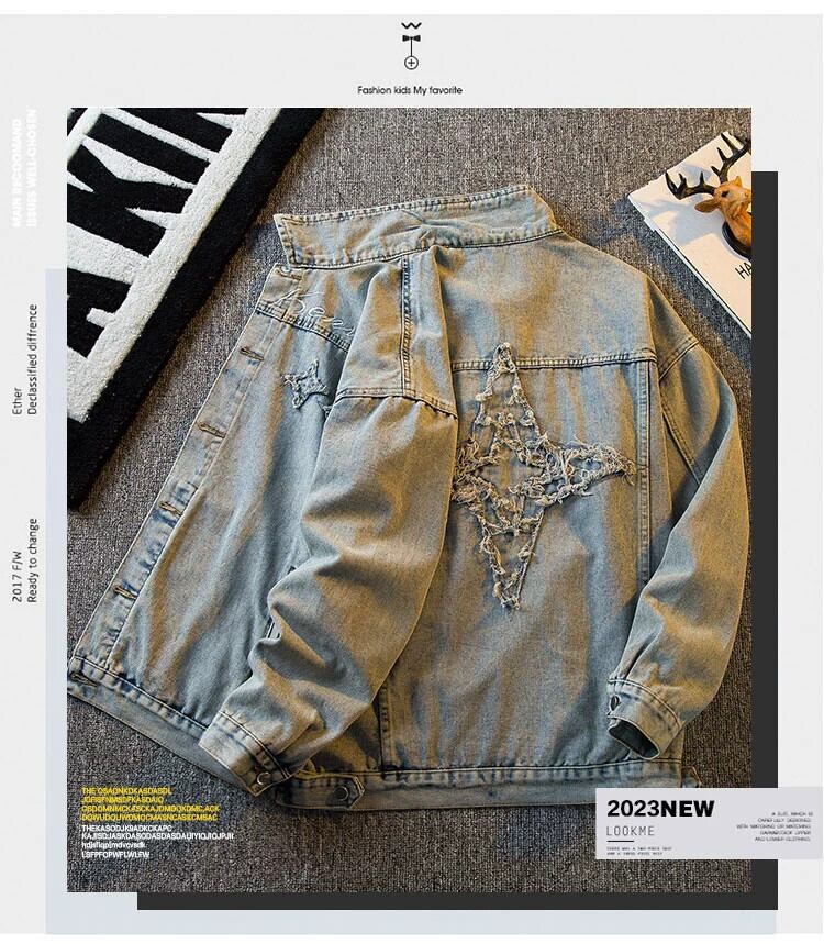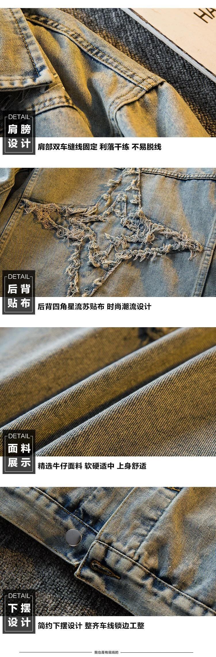 HPCP レトロな雰囲気ハイストリート刺繍スターデニムジャケットメンズハンサムトレンディなブランド古いウォッシュジャケットトップス男性 レッド 3381947264188829