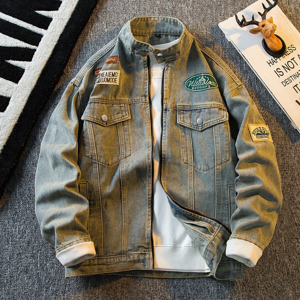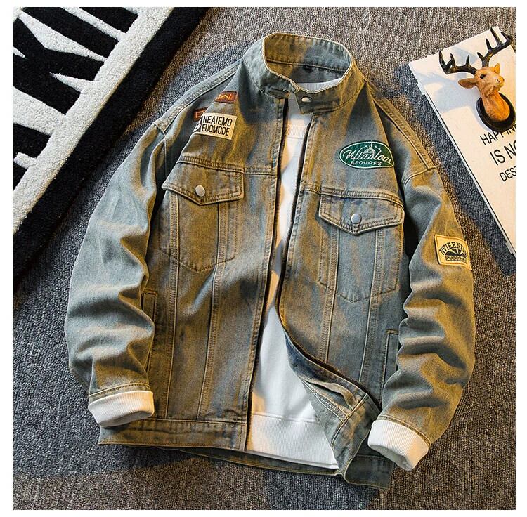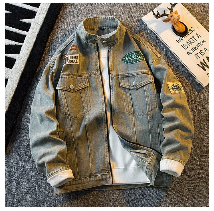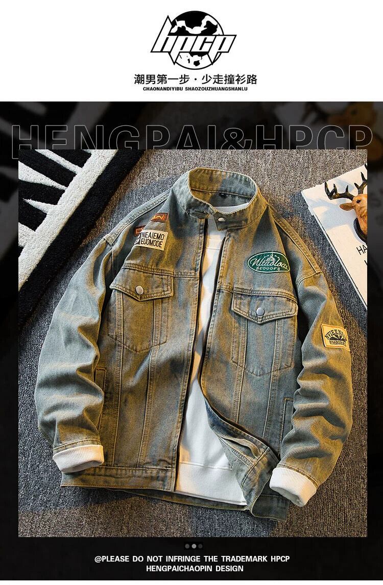 HPCP アメリカンレトロウォッシュバッジデニムジャケットメンズ春秋トレンディブランドハンサムルーズハイストリートバイクジャケット スプリング 春物 オータム 秋物 3381948858582527