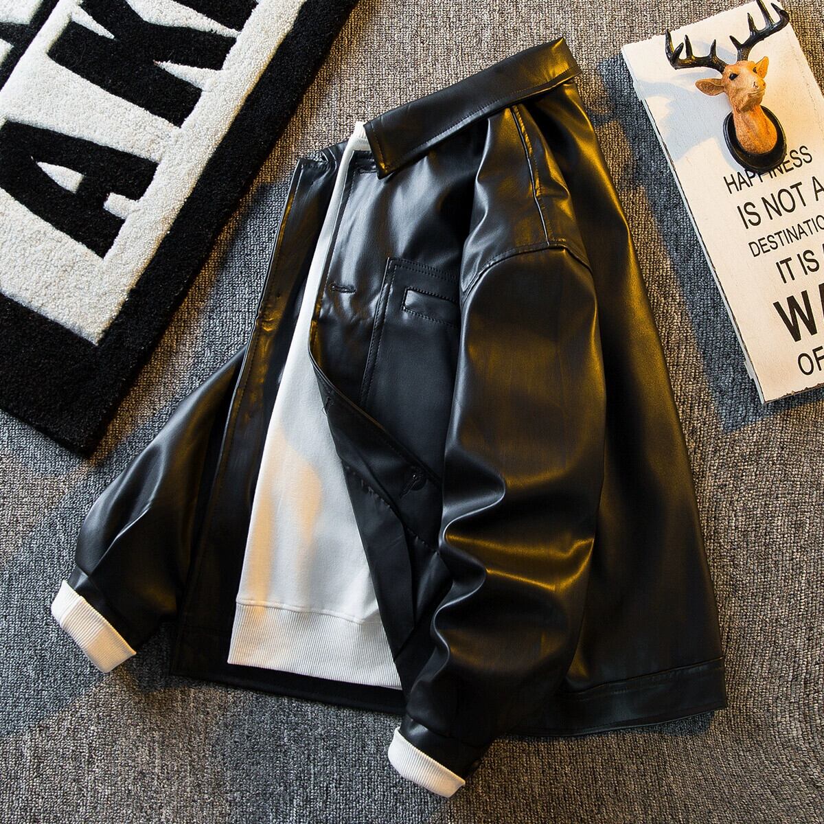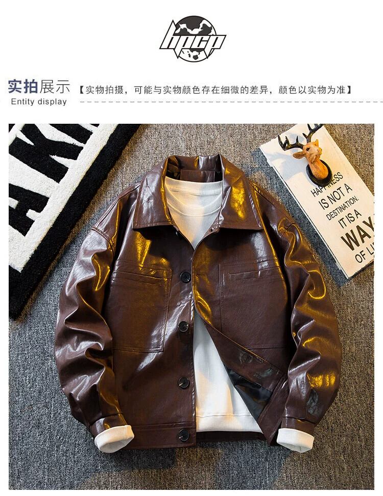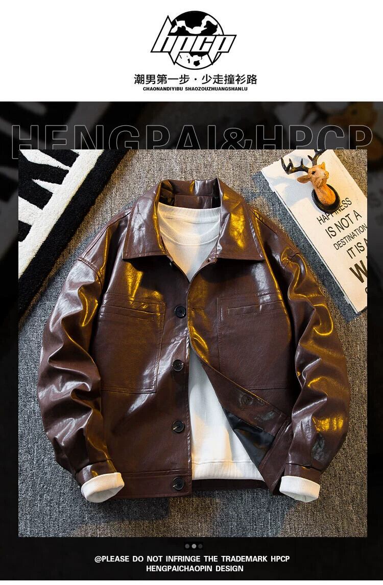 HPCP メイラード レトロ ブラウン レザー ジャケット メンズ 秋冬、ハンサム、ハイエンド、トレンディなメンズ PU レザー ジャケット オータム 秋物 ウィンター 冬物 3381989468758236