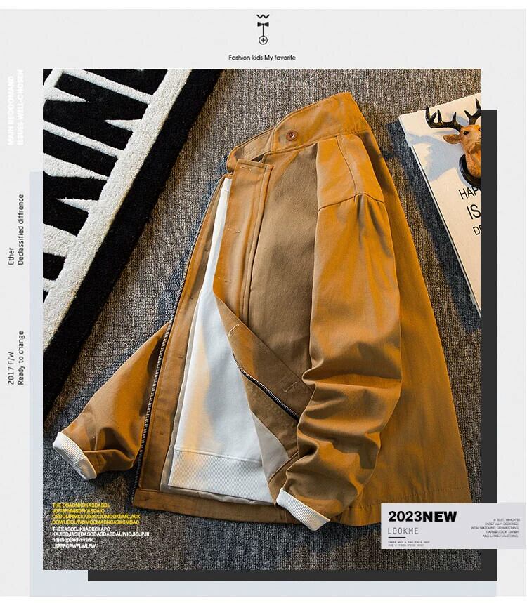 HPCP アミカーキレトロカーキジャケットメンズ春秋メンズ古いトレンディなブランドスタンドアップカラーワークジャケット服 スプリング 春物 オータム 秋物 338194629515961
