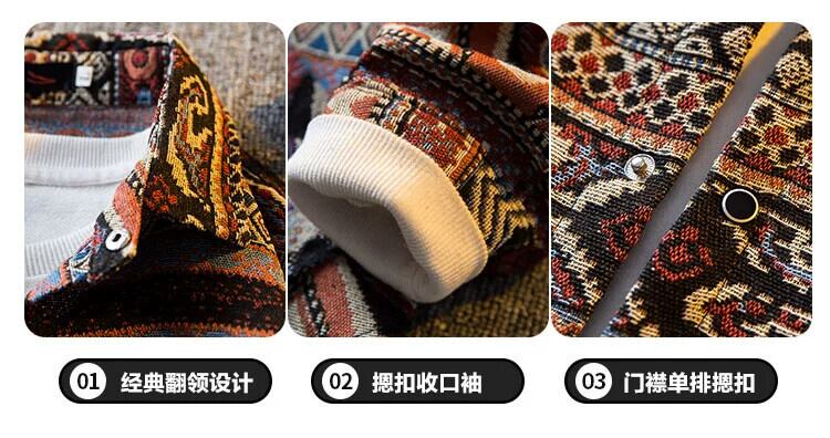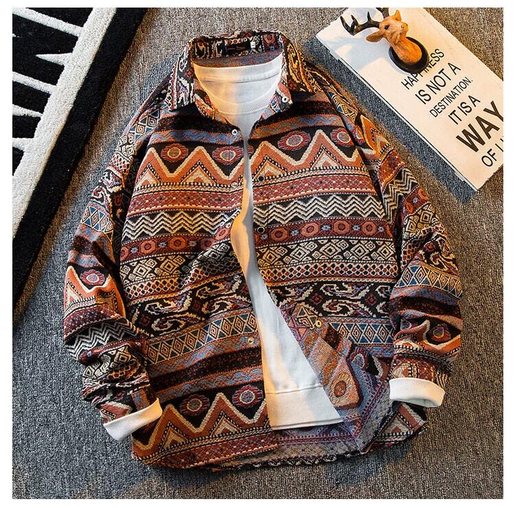 HPCP レトロトーテムジャカードシャツメンズ長袖秋の新トレンドブランドカジュアルハンサムシャツ薄いジャケット男性 ロング オータム 秋物 トートバッグ 3381978426156770
