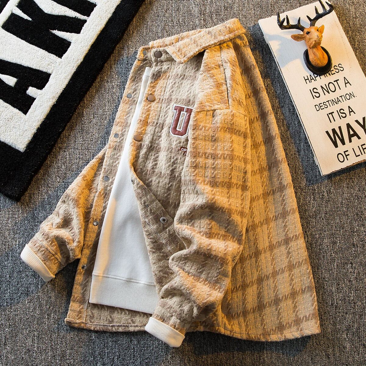 HPCP ese レトロ刺繍ウールチェック柄ジャケットメンズ春と秋の新ファッションブランドカジュアル小さな香りカップルジャケット レッド スプリング 春物 オータム 秋物 3381961248827740