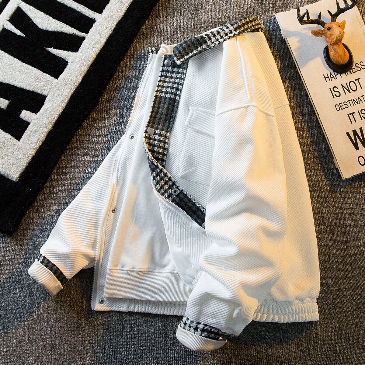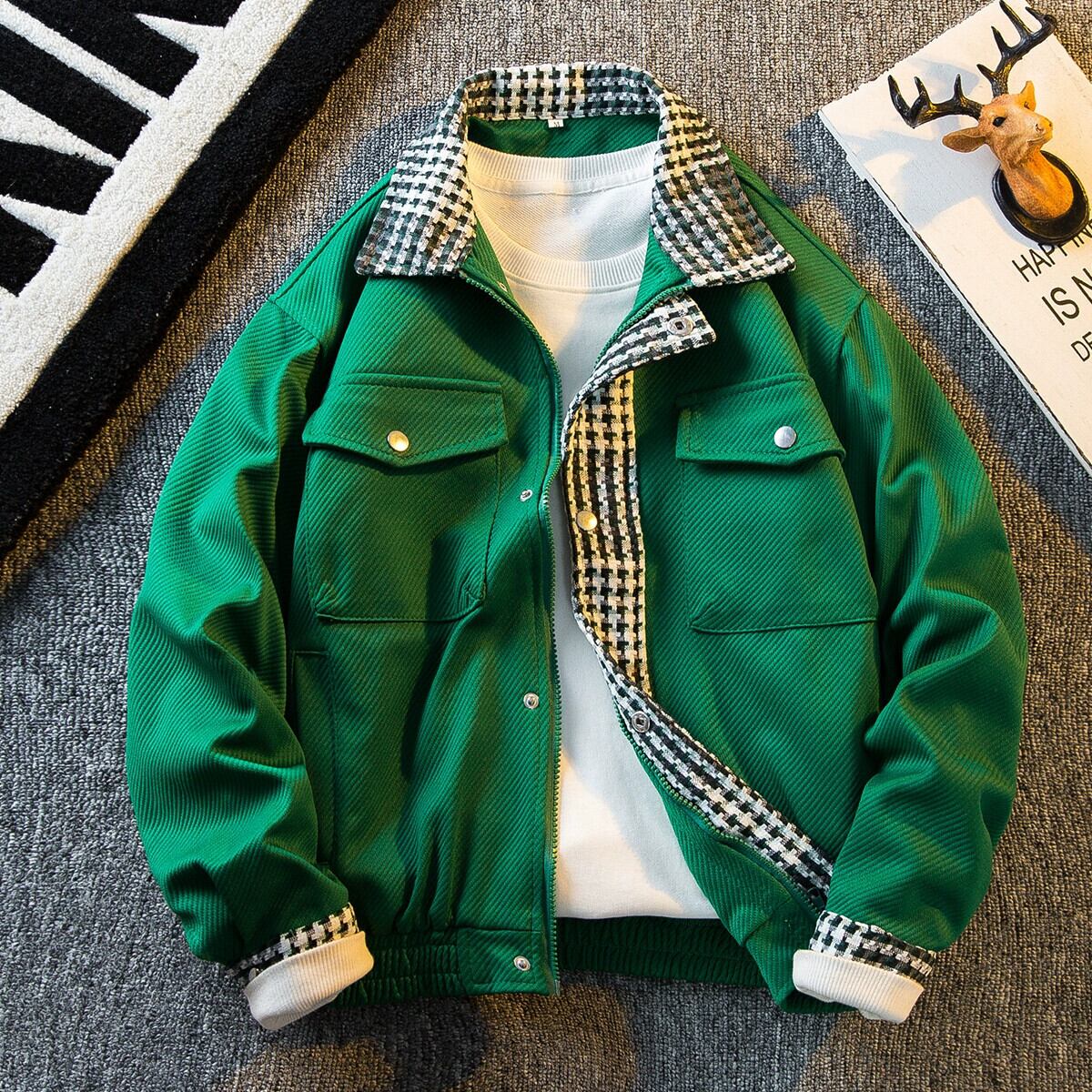 HPCP レトロチェック柄スプライシングハンサムジャケットメンズ春と秋のトレンディブランドインターネットセレブバージョンスリムトレンドカジュアルジャケット スプリング 春物 オータム 秋物 3381956957486762