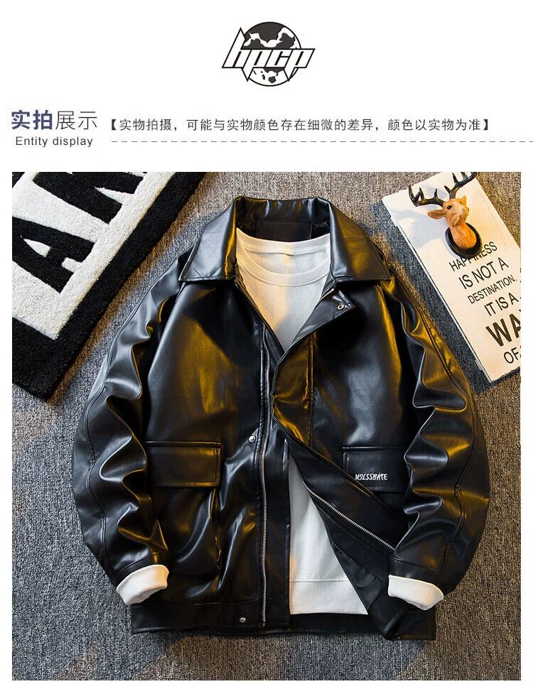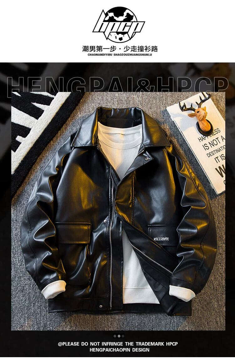 HPCP アメリカンレトロ刺繍ハンサムレザージャケットメンズ春秋トレンディブランドハイエンドルーズボーイズ Pu レザージャケット スプリング 春物 オータム 秋物 3381938406402540