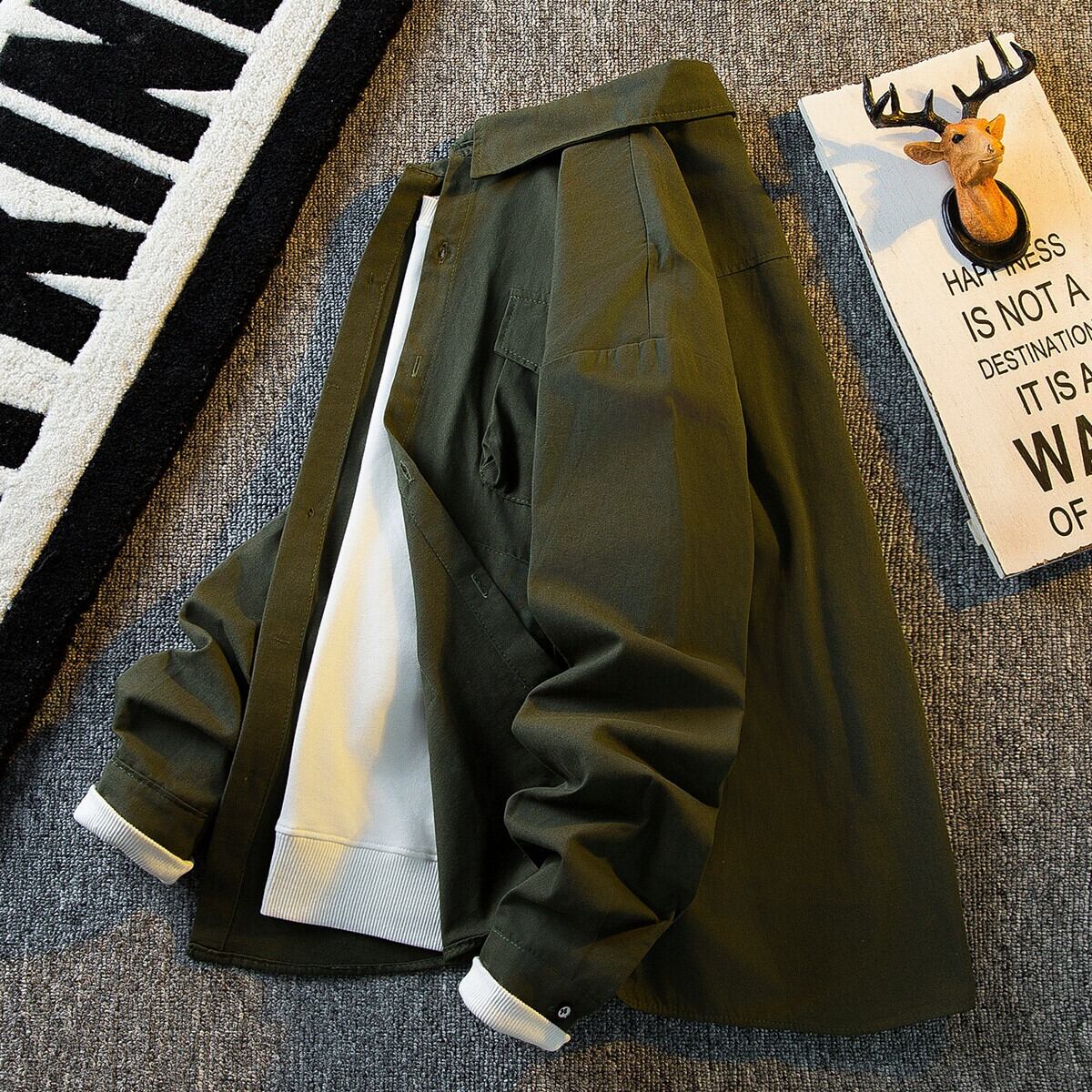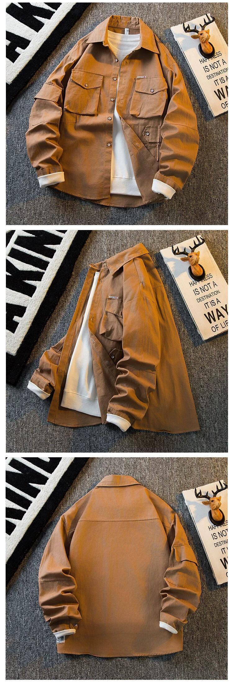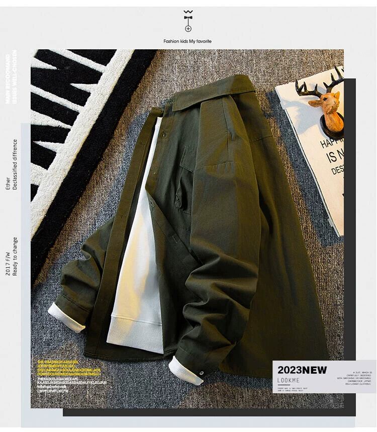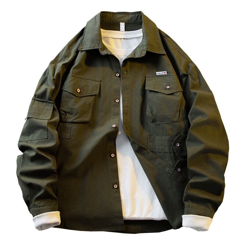 HPCP アーミーグリーンレトロワークシャツメンズ長袖秋のハイエンドメンズ ese トレンドカジュアルシャツ男性 ロング オータム 秋物 3381937989782001