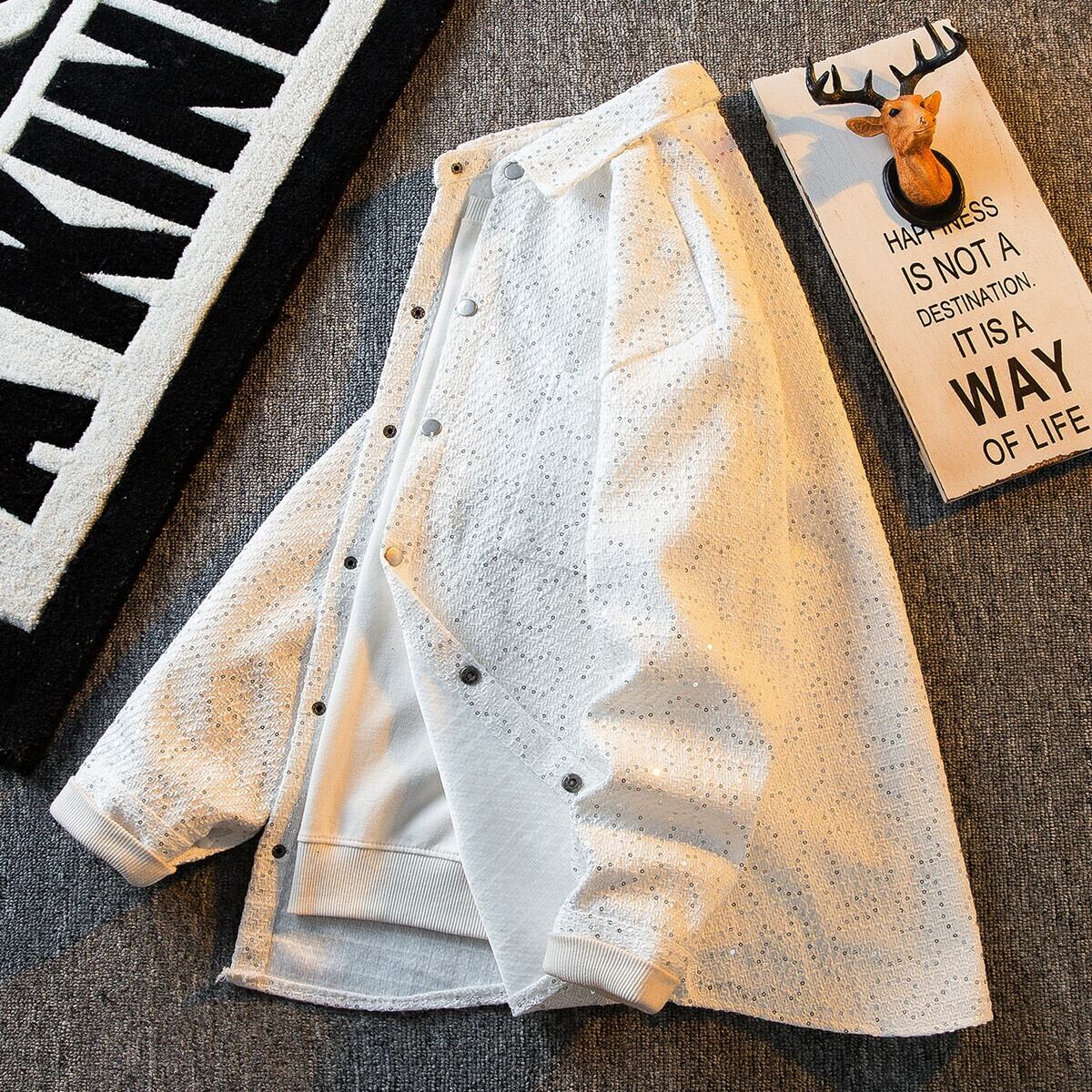 HPCP スパンコールデザイン小さなフレグランスジャケットメンズ春と秋のトレンディなブランドハンサムメンズカジュアルニットジャケットトップ スプリング 春物 オータム 秋物 3381938975240626