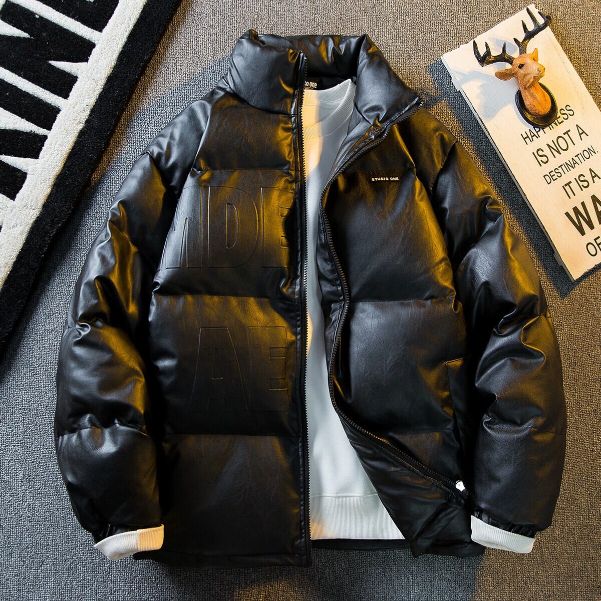 Hengpai トレンディな冬アメリカのトレンディなブランド pu レザーコットンコートメンズトレンディなブランドハイエンドスタンドカラー防風オートバイコットンジャケット ウィンター 冬物 3381953949020679