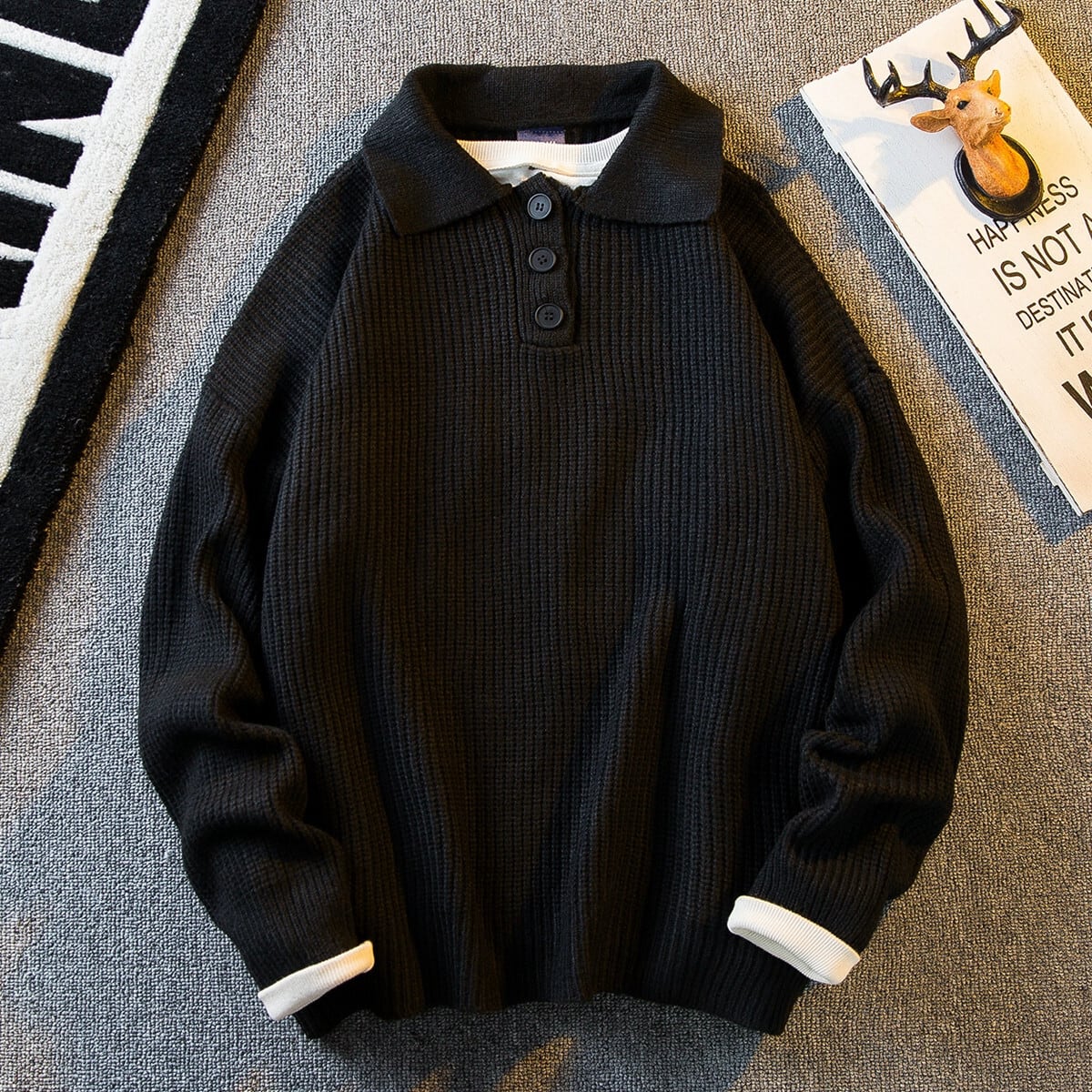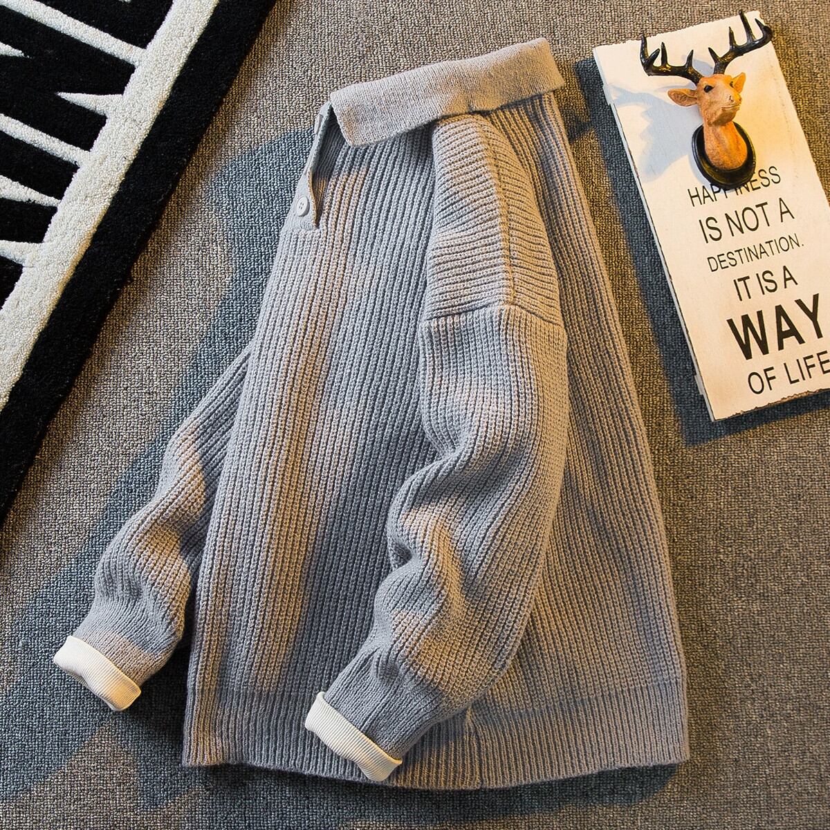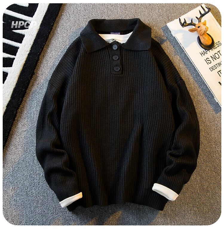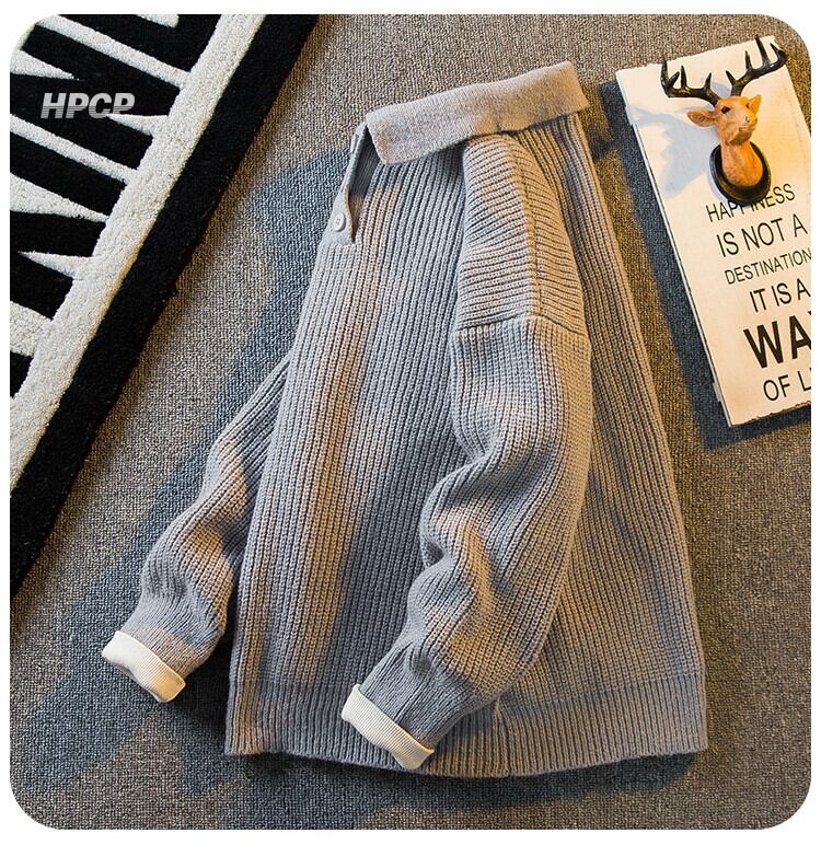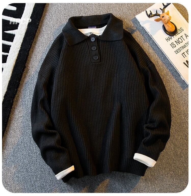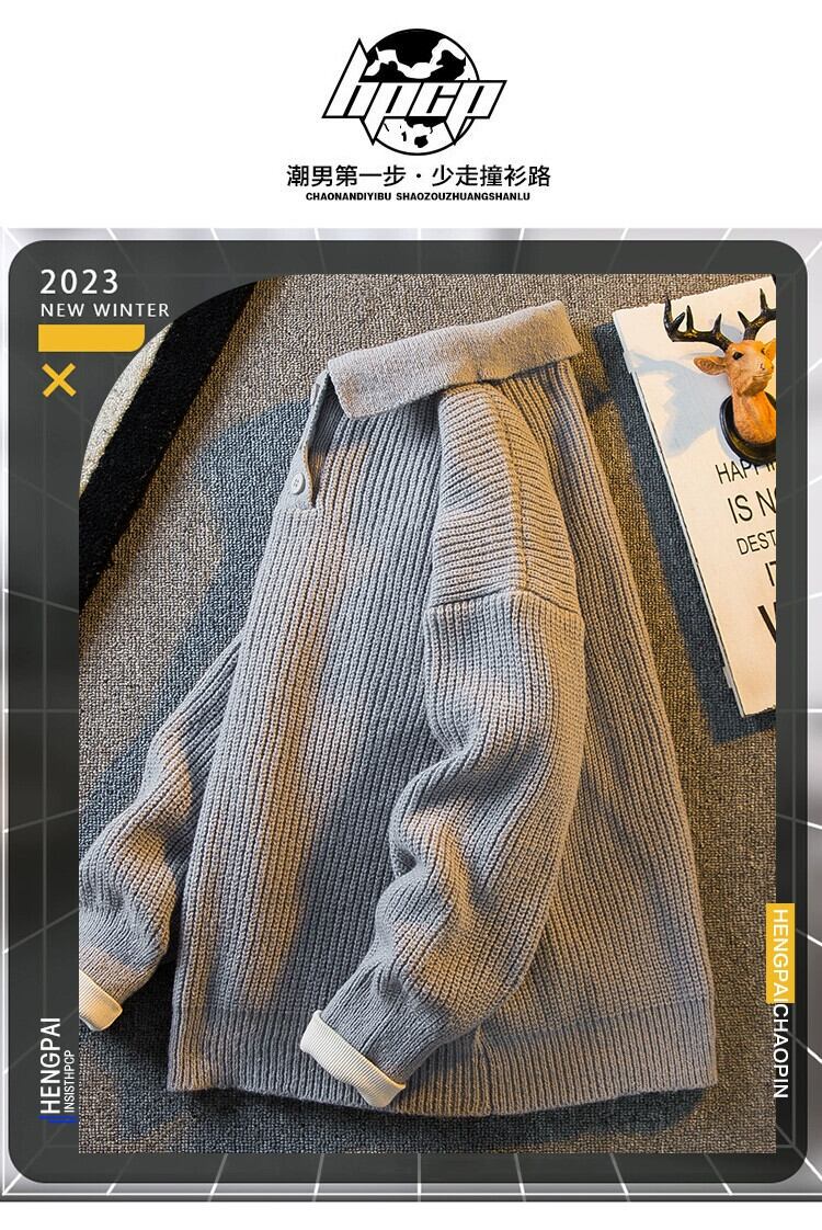 横向きのトレンディなこれらのカレッジスタイルのポロカラーセーター、怠惰なスタイルのメンズ冬レトロ多目的ラペルニットジャケット ウィンター 冬物 3381985196729552