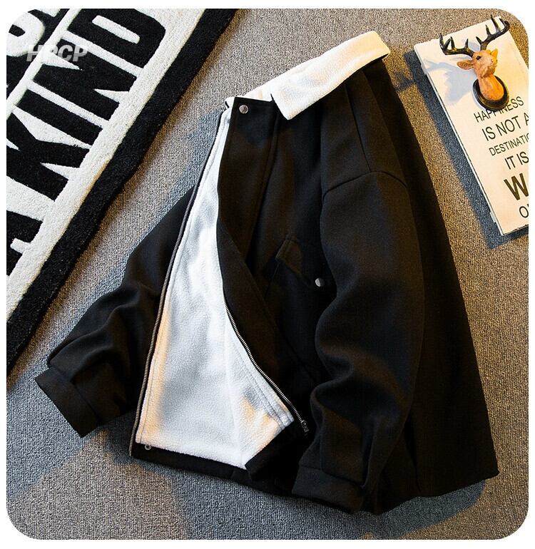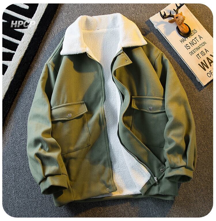Hengpai トレンディな秋と冬の厚みのあるコットン ジャケット、ラム ベルベット ワーク ジャケット、メンズ プラス ベルベット暖かいウール コート ジャケット オータム 秋物 ウィンター 冬物 3381998621893116