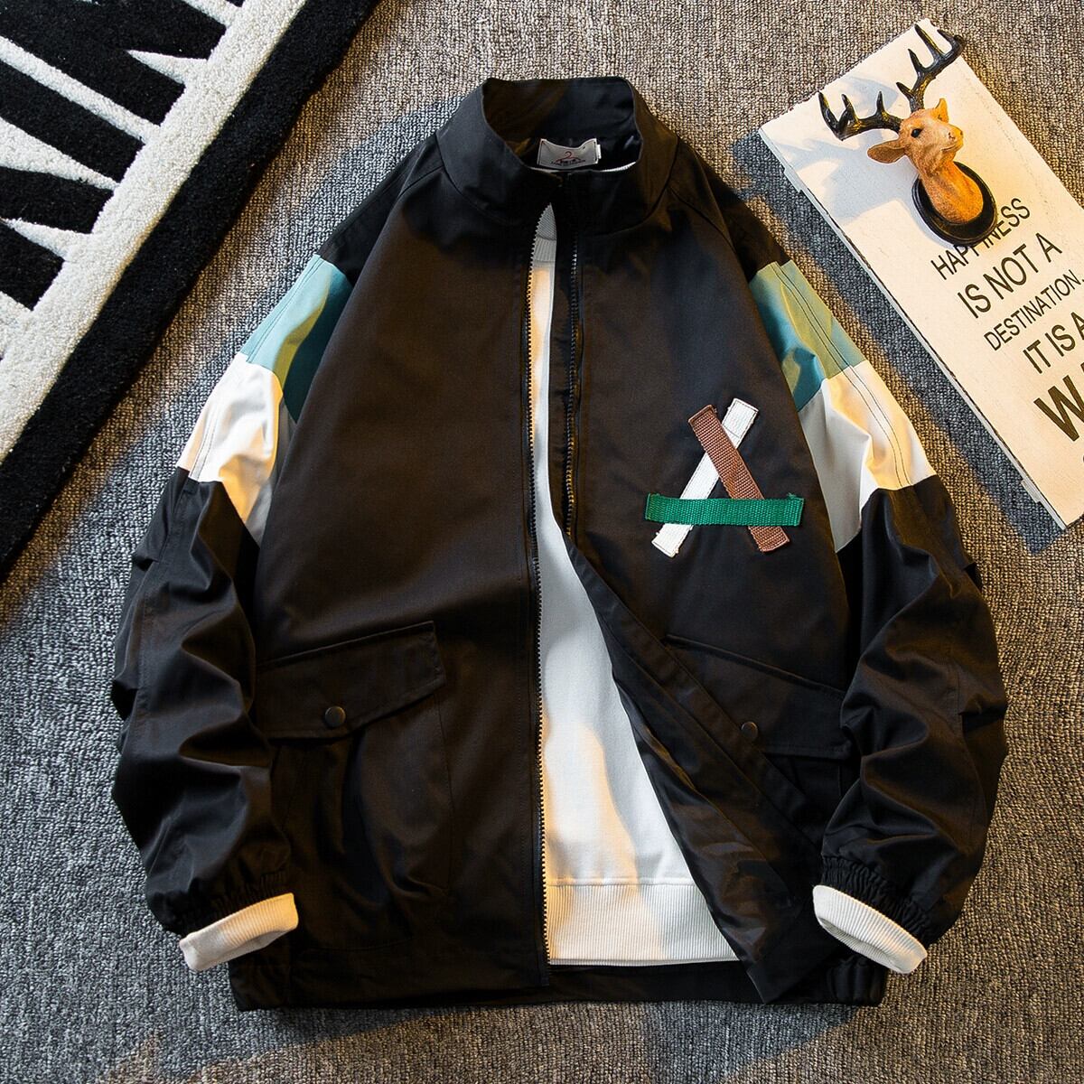 HPCP ese スプライシングコントラストカラーハイエンドジャケットメンズ秋の新作メンズハンサムライト大人カジュアルスタンドカラージャケット オータム 秋物 3381996284262169