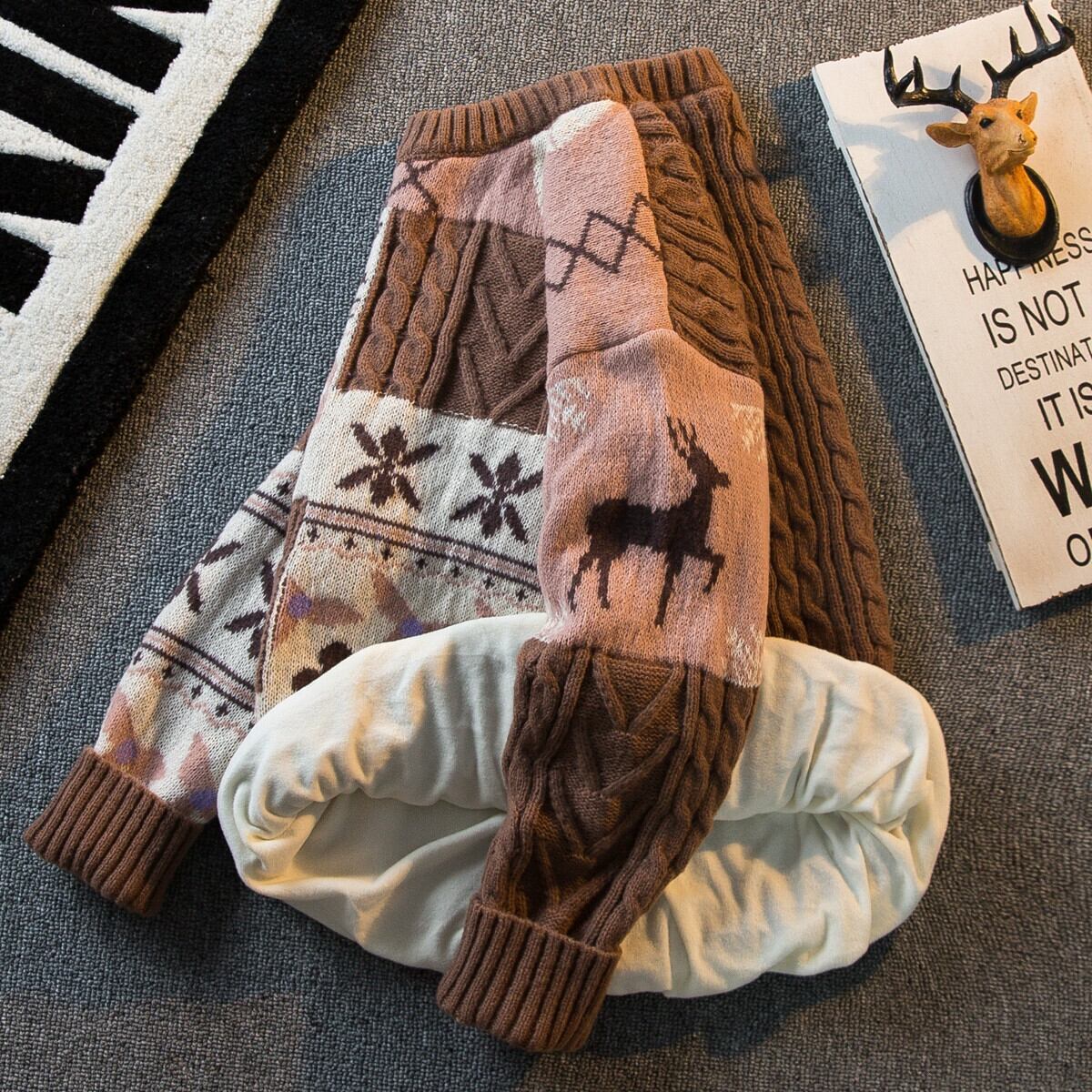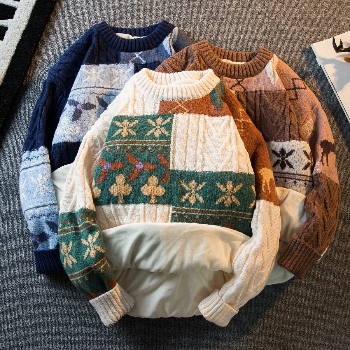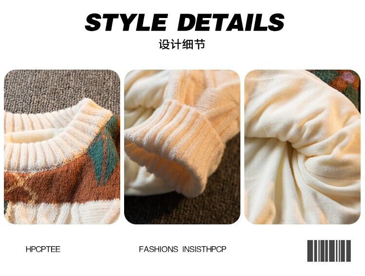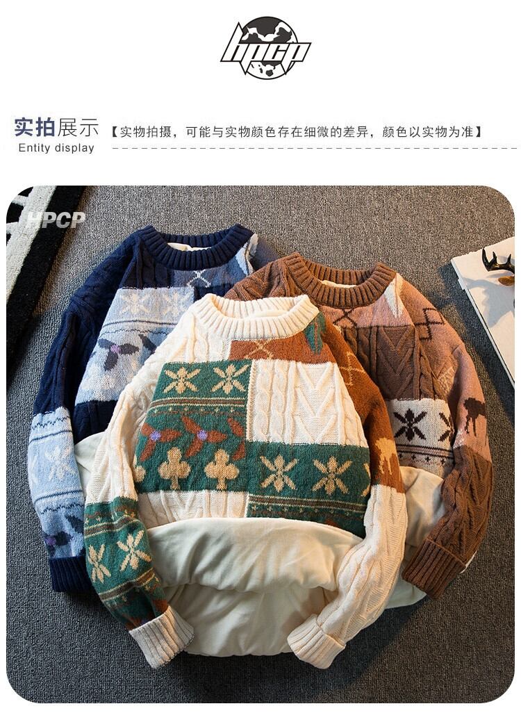 HPCP 怠惰なスタイルの冬用ツイスト セーター メンズ プラスベルベットと厚みがあり、ルーズ ラウンド ネック セーター メンズ ウィンター 冬物 Oネック 3381986047197106