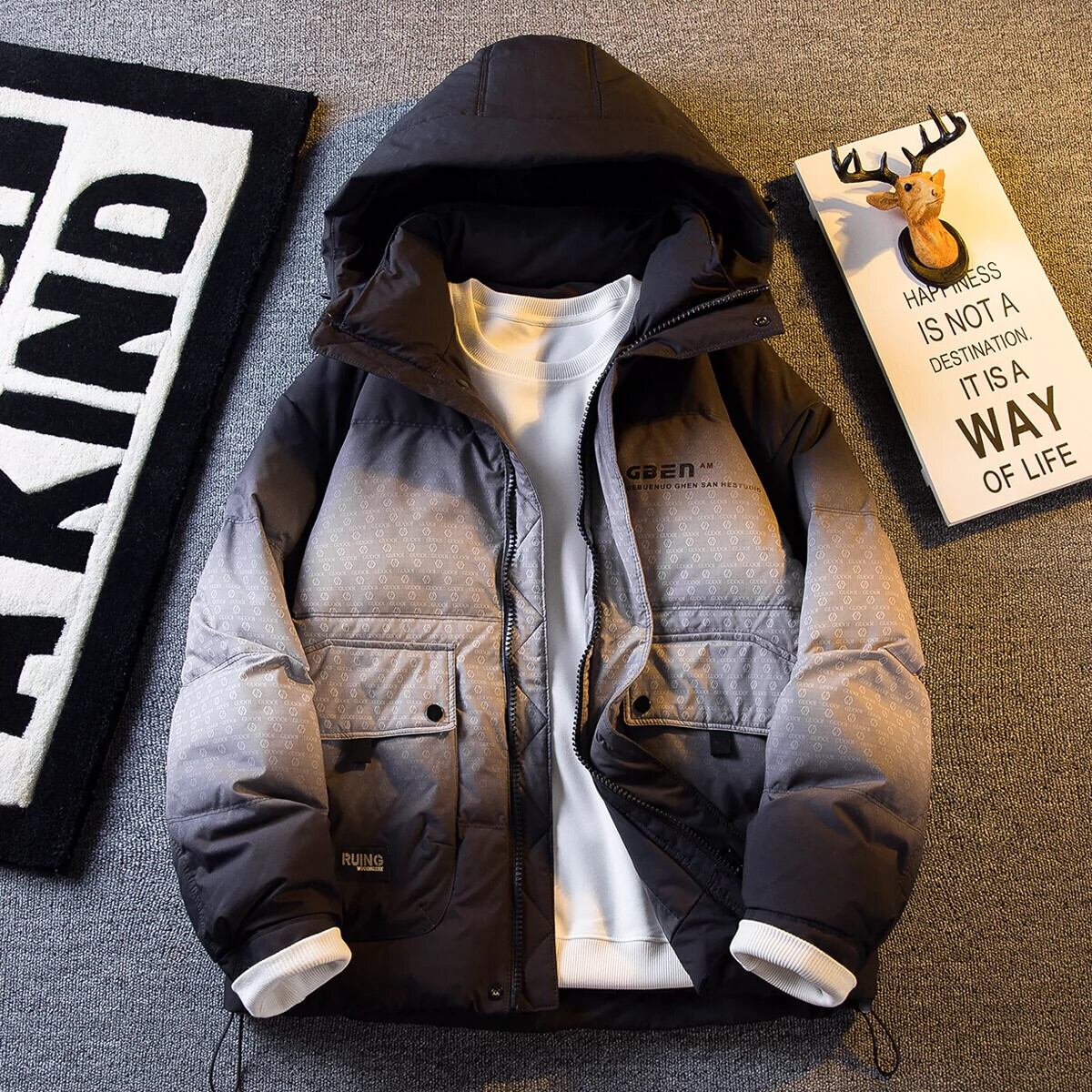 Hengpai トレンディなハイエンドグラデーションダウンジャケットメンズ冬軽くて薄いブレッドコートホワイトダックダウン厚く暖かいダウンジャケット ウィンター 冬物 3381972049532278