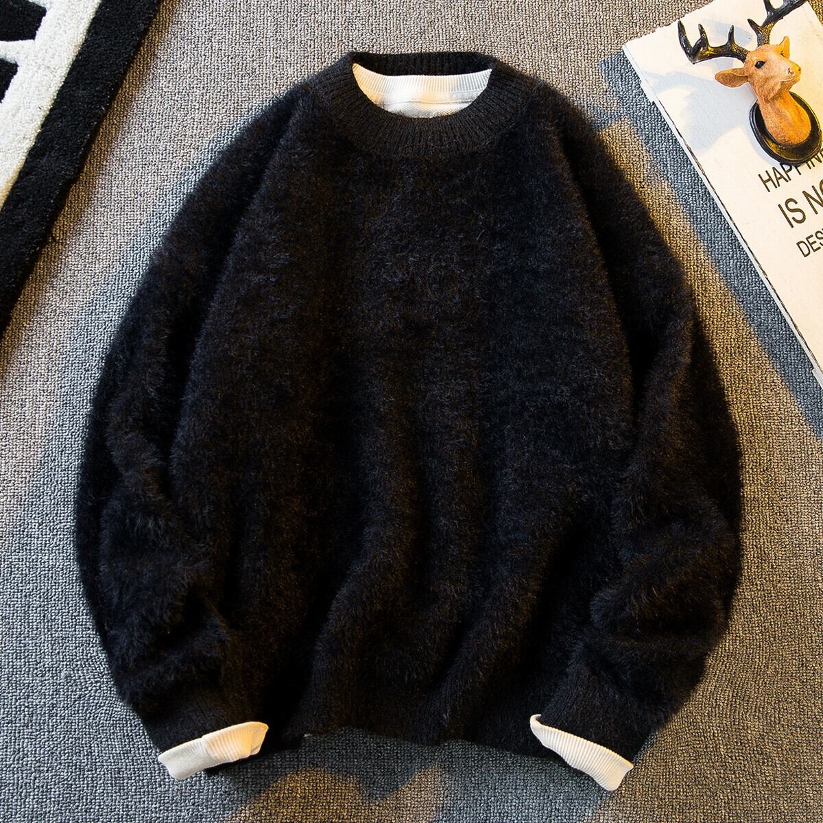 Hengpai トレンディな秋と冬のスタイル怠惰な模造ミンクセーター無地トレンド多用途ソフトワックス状ニットモミジャケットメンズ オータム 秋物 ウィンター 冬物 ソリッドカラー 3381983195752525