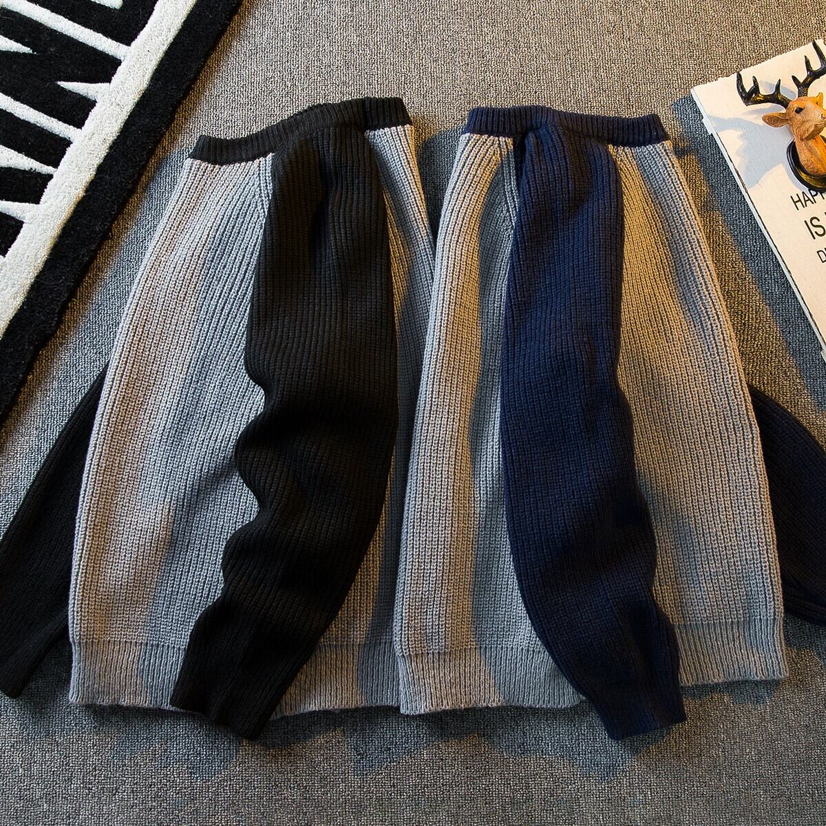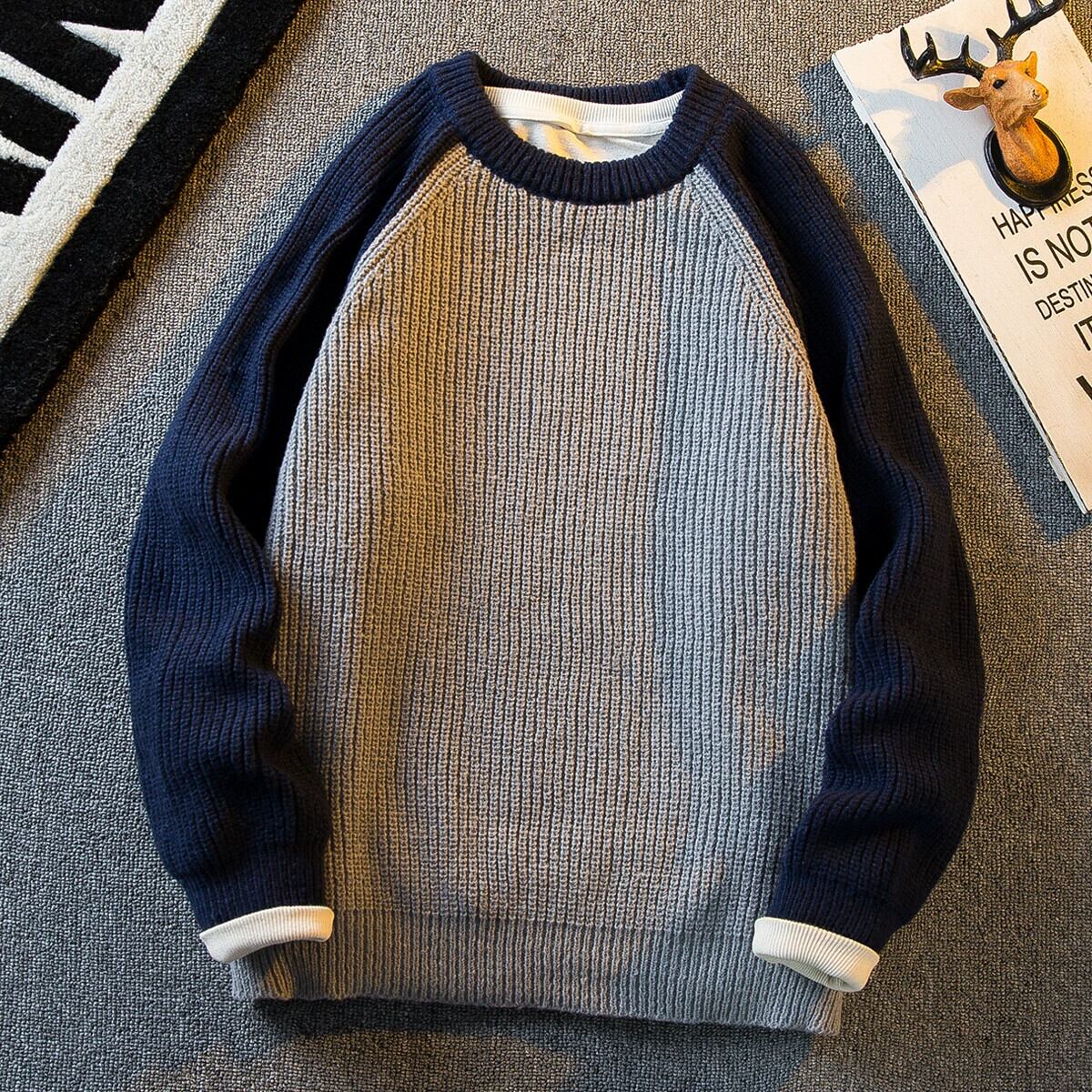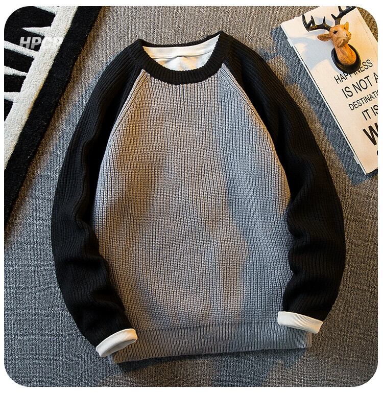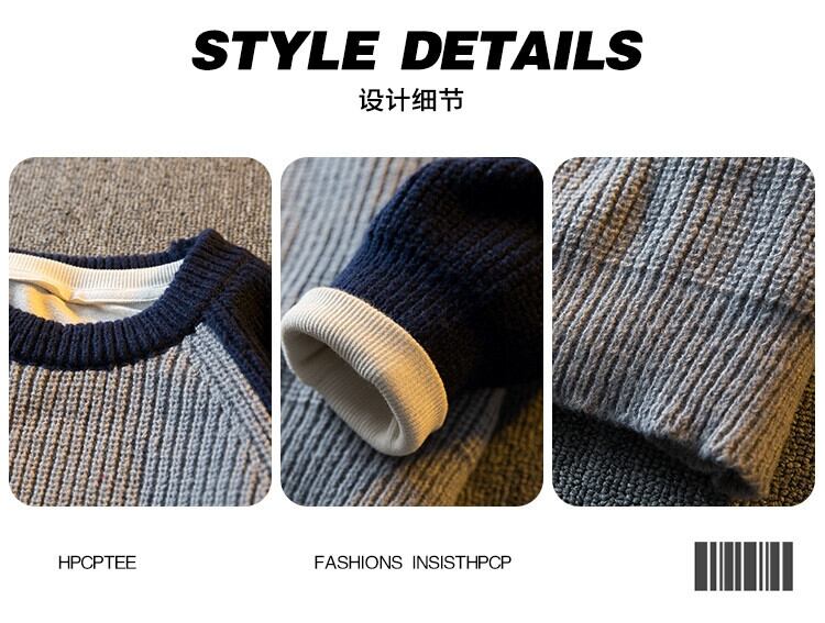 HPCP ese レトロシンプルなスプライシングラウンドネックセーターメンズトレンディな冬厚く暖かいトレンディなブランド男の子のセーター ウィンター 冬物 Oネック 3381921939842872