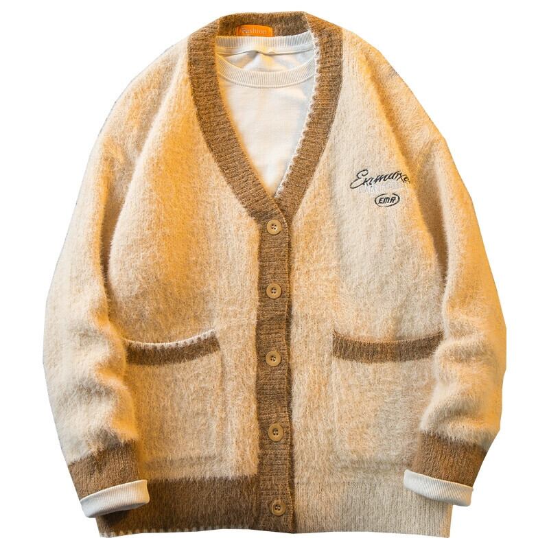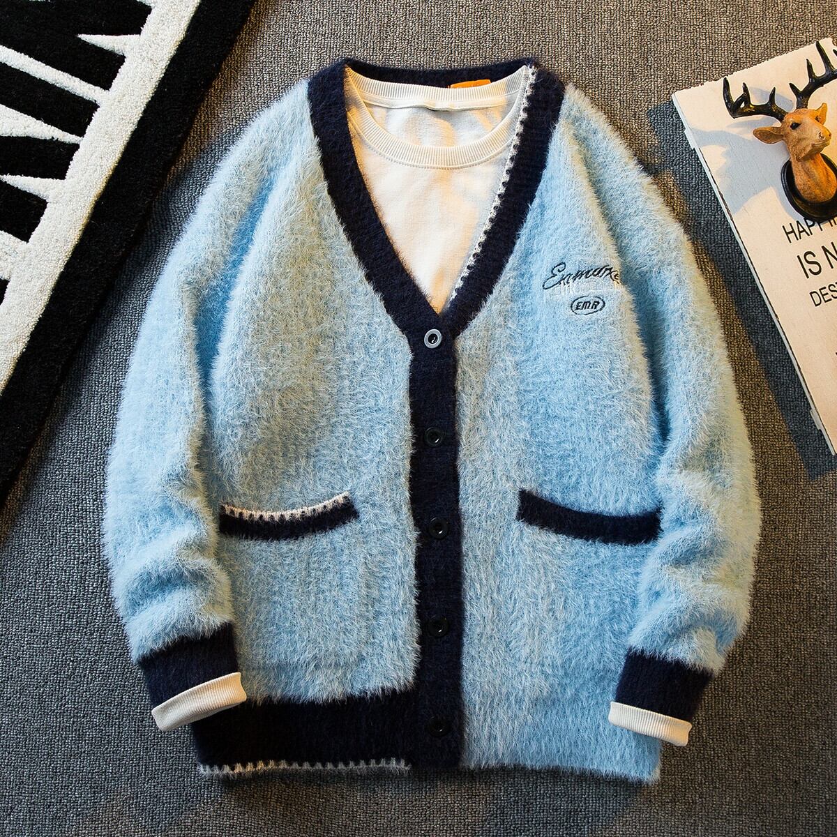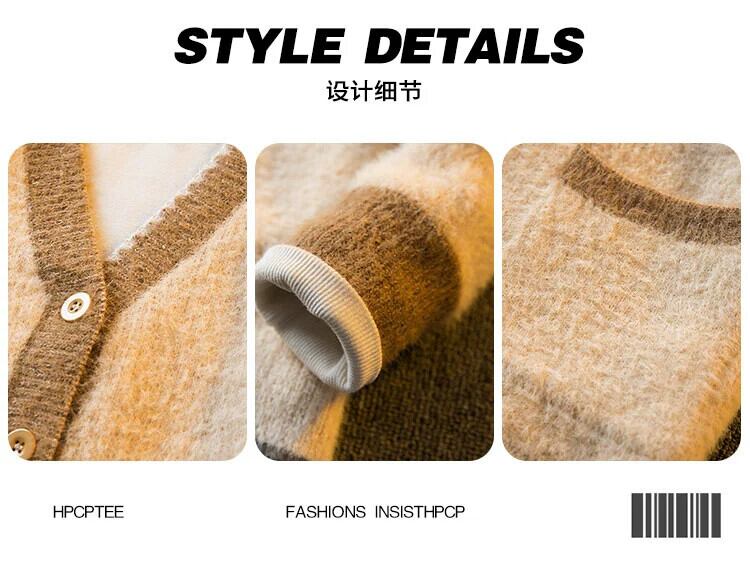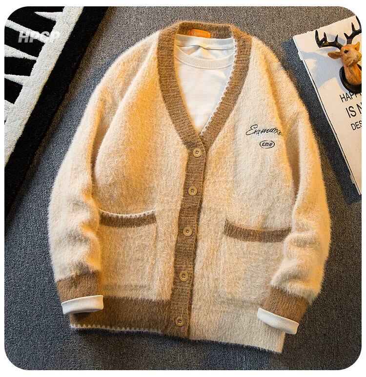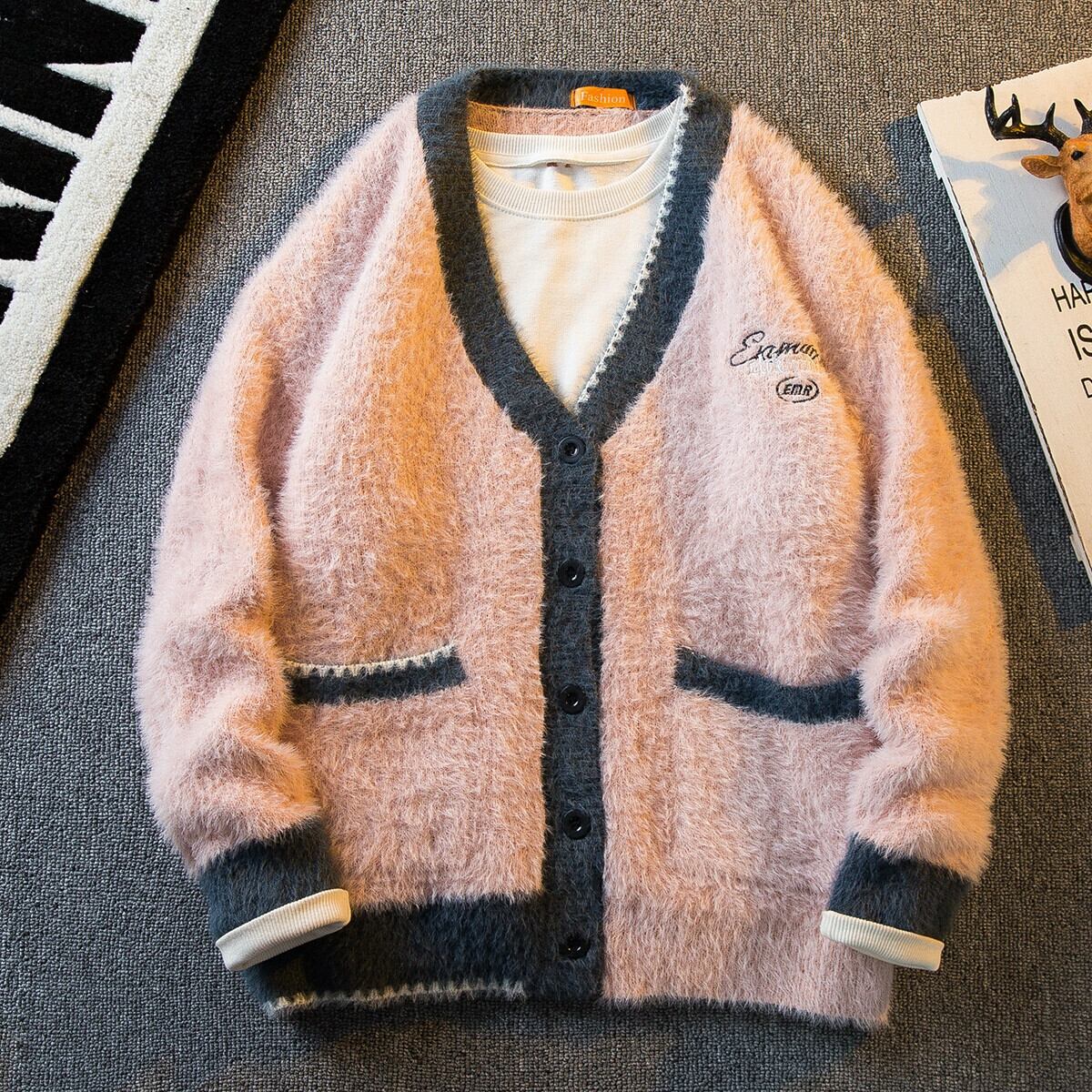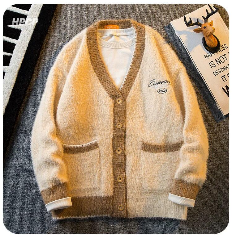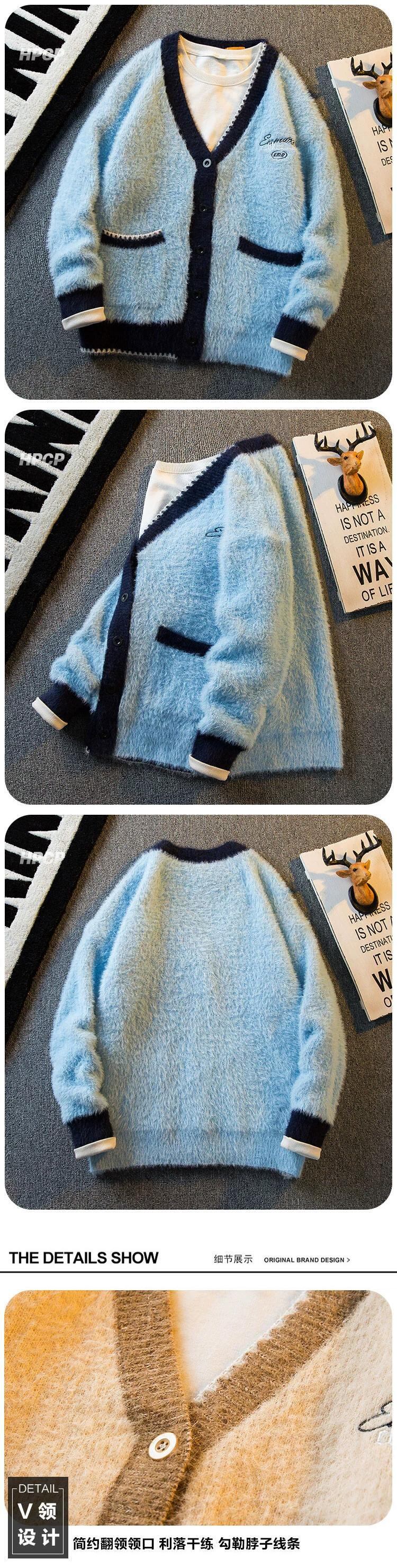 HPCP ソフトワックス状模造ミンク V ネックカーディガンセーターメンズ肥厚トレンディなブランド緩い怠惰なスタイルのカップルのセータージャケット Vネック 3381987975972682