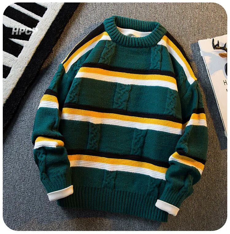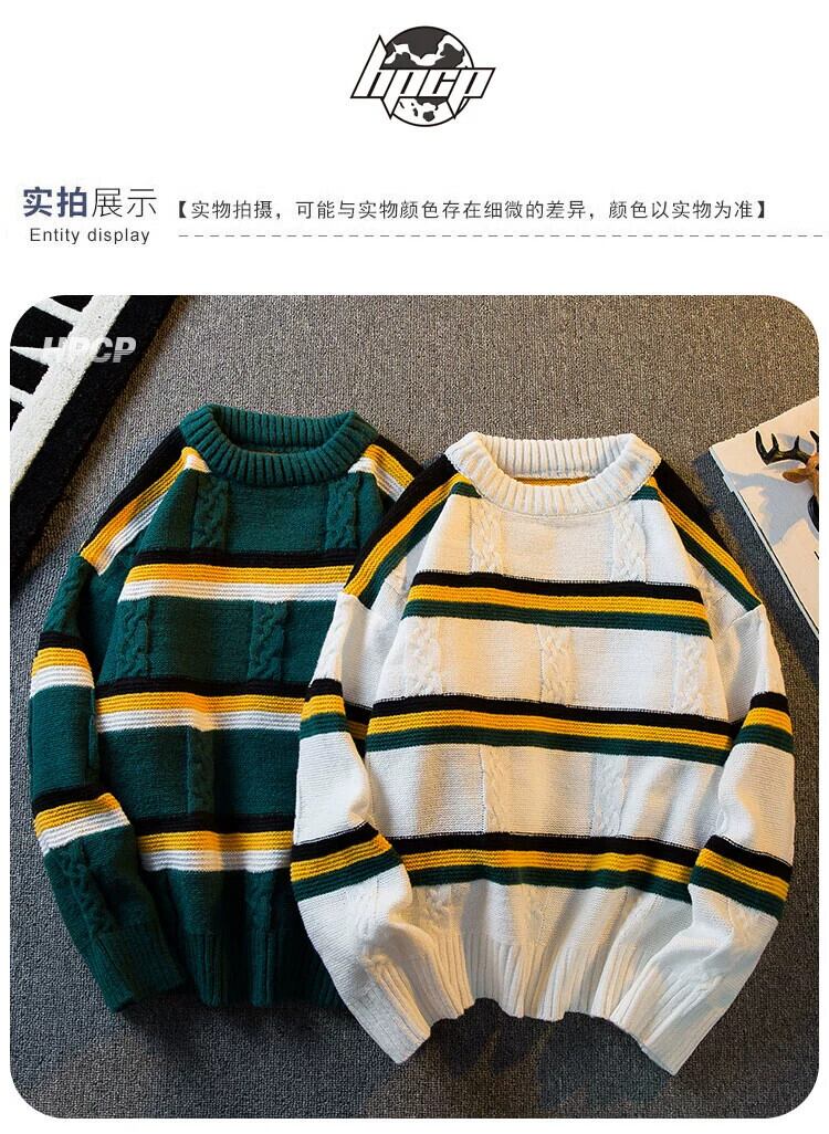 HPCP ese ストライプツイストセーターメンズ秋と冬ルーズ怠惰なスタイル肥厚暖かいプルオーバー暖かいセーター オータム 秋物 ウィンター 冬物 3381980845736381
