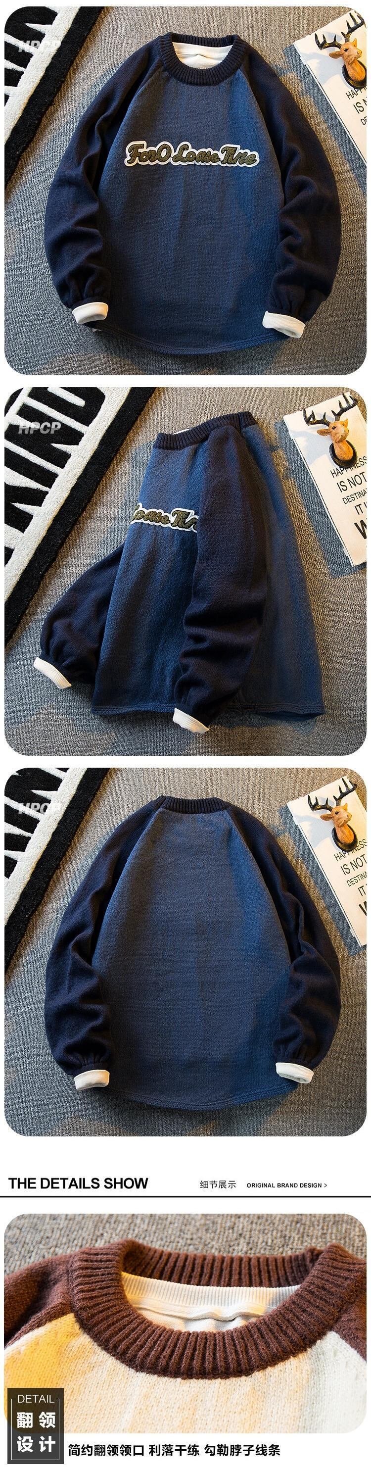 HPCP アメリカンレトロラグランセーターメンズデザイン冬厚く暖かいルーズカレッジスタイルボーイズニットセーター ウィンター 冬物 3381964382847922