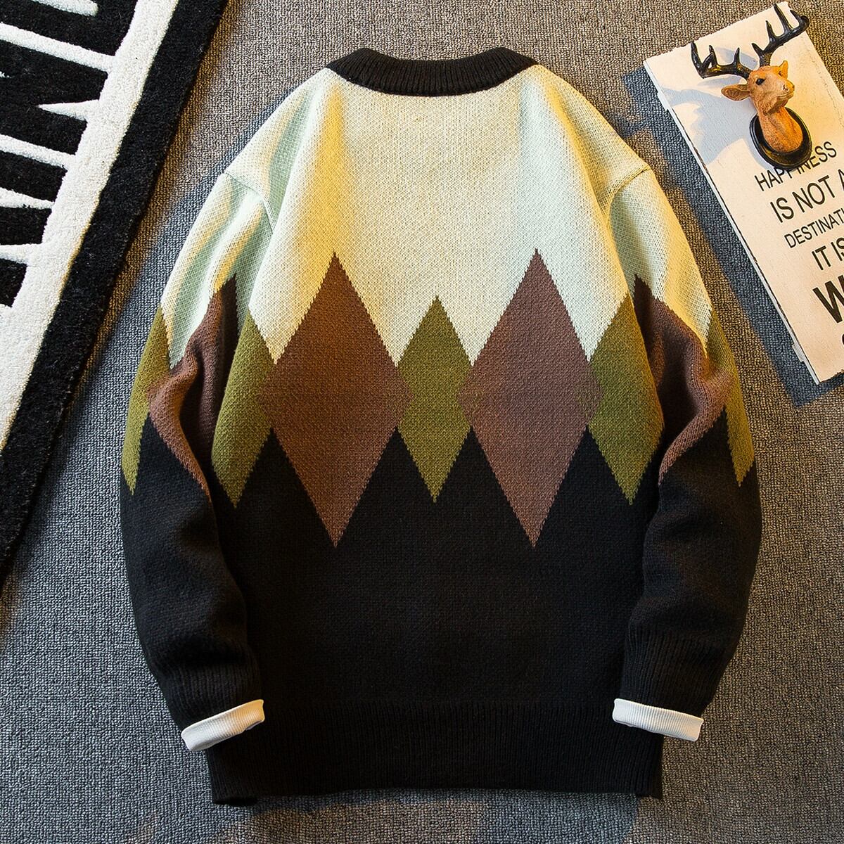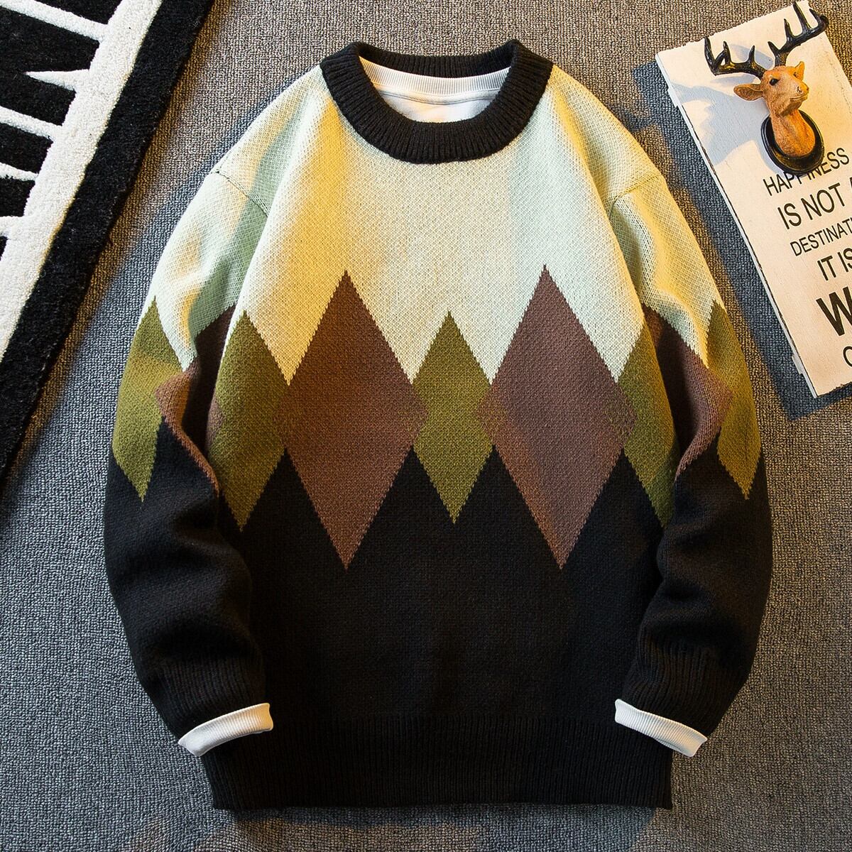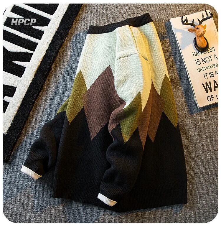 HPCP ese レトロ菱形ステッチラウンドネックセーターメンズ冬のハイエンドトレンディなブランド暖かいインナーセーター男性 ウィンター 冬物 Oネック 3381948660779540