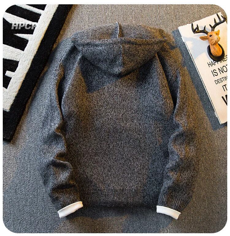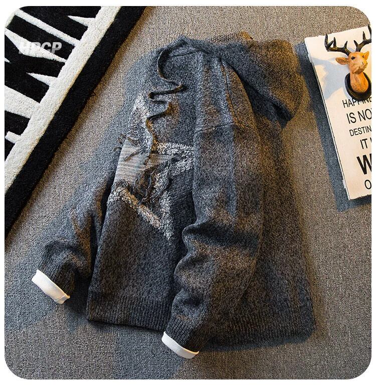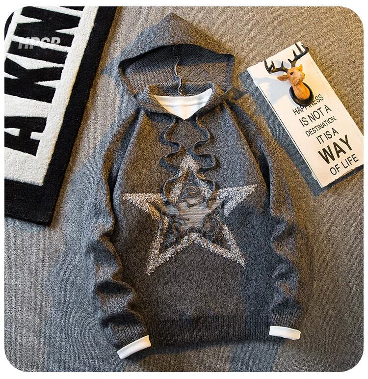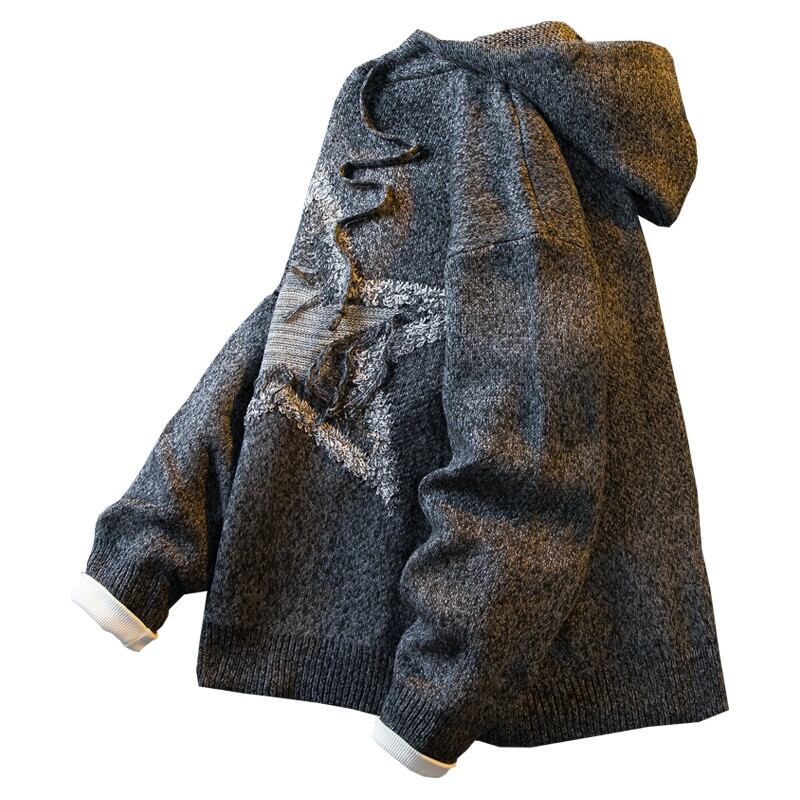 HPCP アメリカンレトロスター刺繍グレーセーターメンズ秋と冬のハイストリートイントレンディなブランドセーターフード付きジャケット レッド オータム 秋物 ウィンター 冬物 3381973937749163