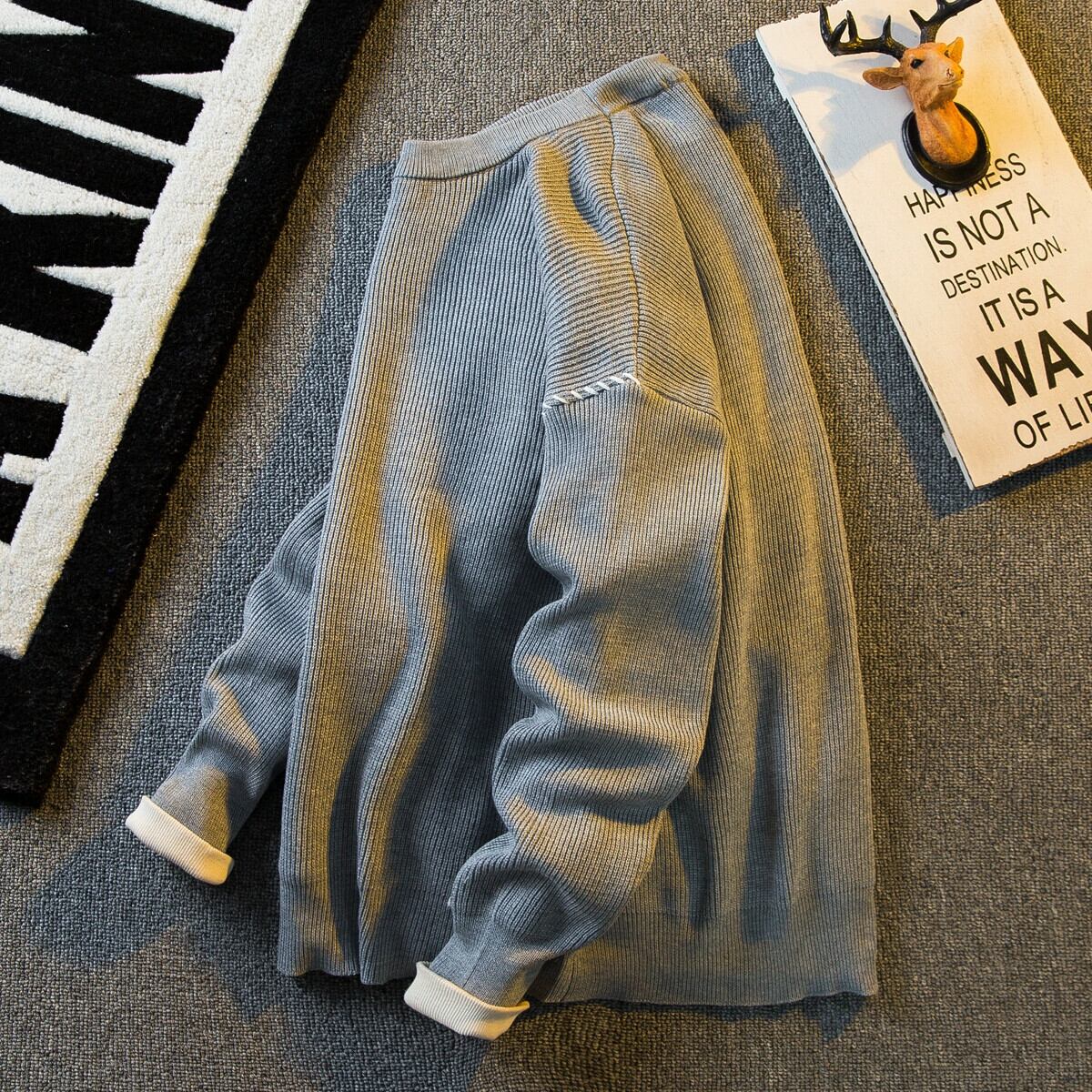 Hengpai トレンディな秋冬スタイルのステッチ セーターは、ニッチなデザインのセーターとラウンドネック セーターを備えたメンズです。 オータム 秋物 ウィンター 冬物 3381930929226281