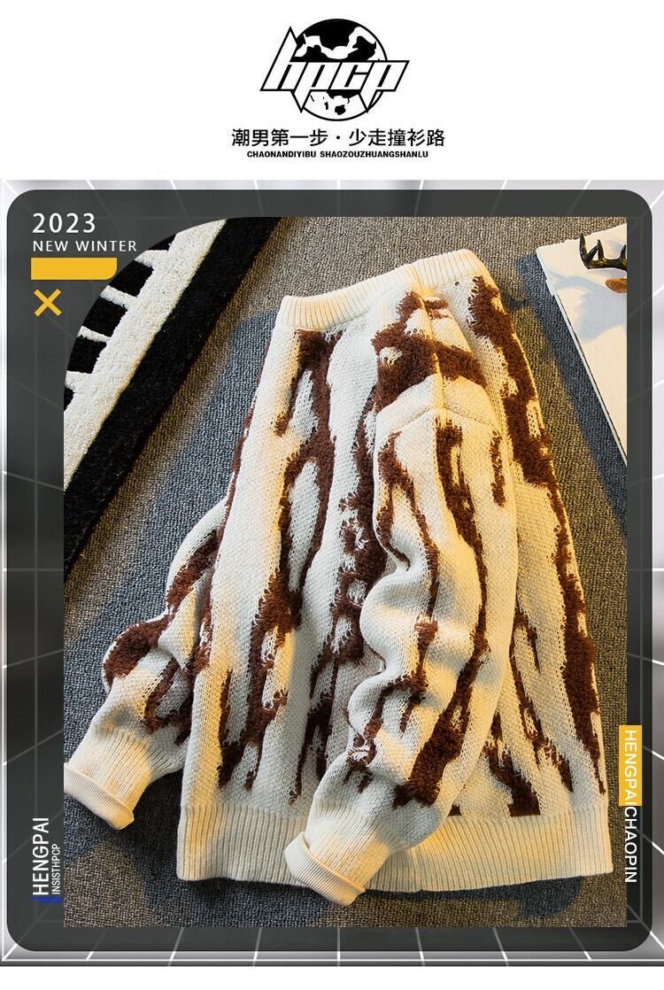 Hengpai トレンド製品ヘビーウェイト国民トレンドレトロストライプセーターメンズ秋と冬怠惰なハイエンドトレンディブランド厚いウールのセーター オータム 秋物 ウィンター 冬物 3381998091600362