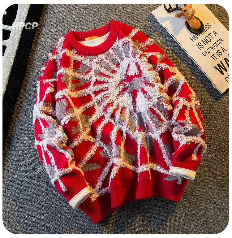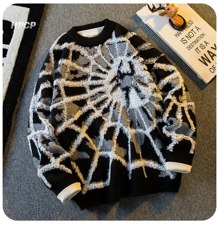 水平ファッションアメリカンストリートスパイダージャカードセーターメンズ秋と冬のセーター怠惰なファッションブランドカジュアルセーター オータム 秋物 ウィンター 冬物 3381917512413843