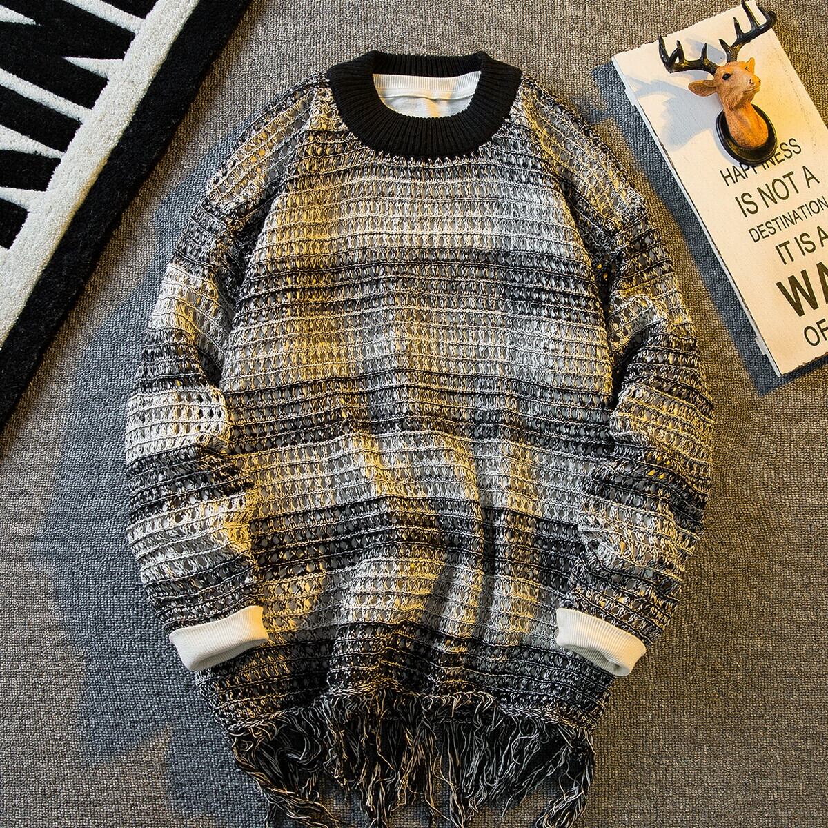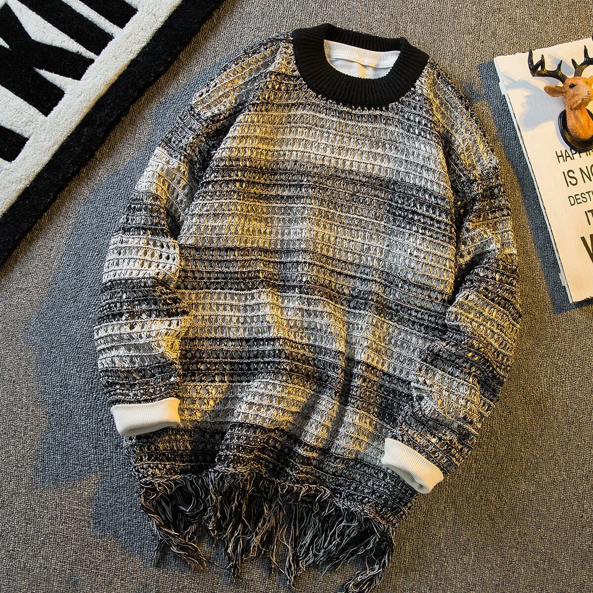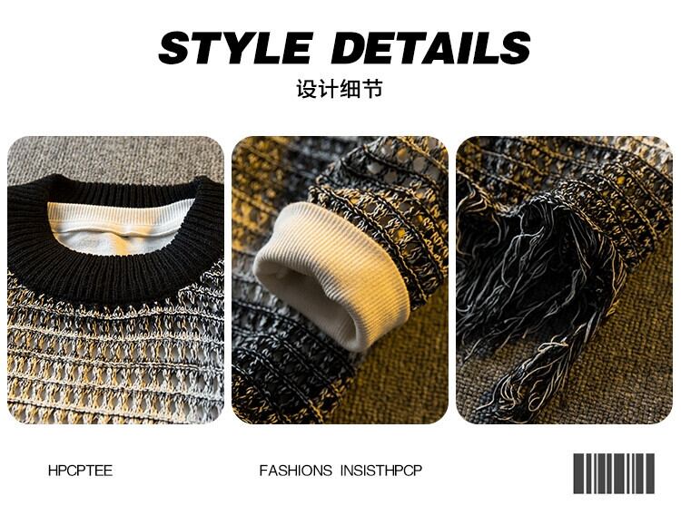 Hengpai トレンディなハイストリートハンサムな中空ストライプセーターメンズ秋と冬のスタイルニッチ怠惰なスタイルの電話セータージャケット オータム 秋物 ウィンター 冬物 3381955110056682