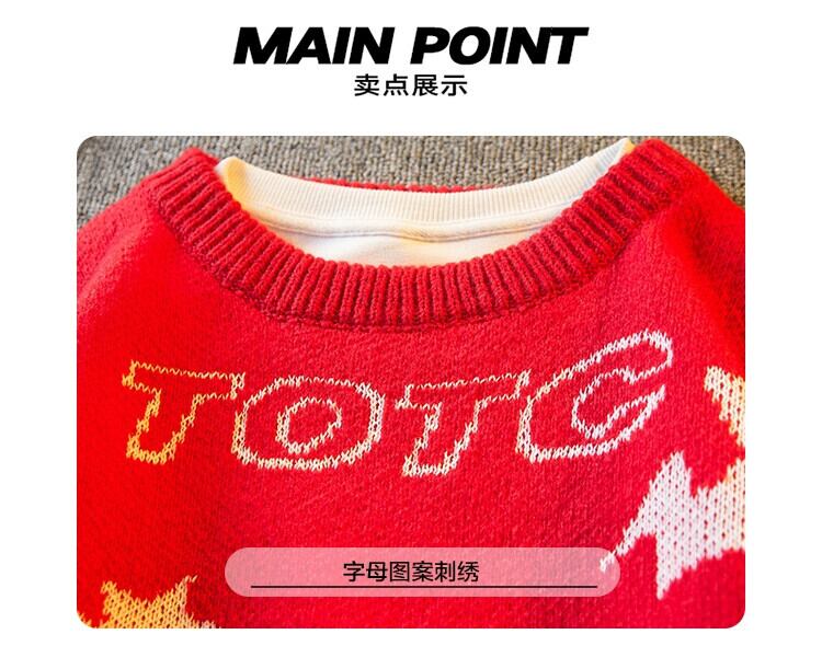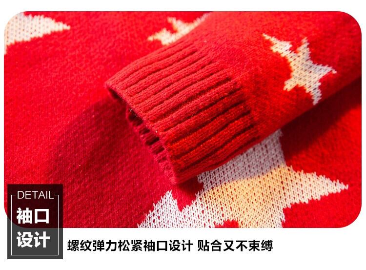 水平トレンディアメリカンクリスマスレッドスターセーター男性と女性、秋と冬のカップル、レトロな怠惰なスタイルのセーター オータム 秋物 ウィンター 冬物 3381943487701673
