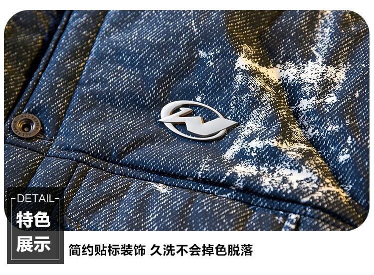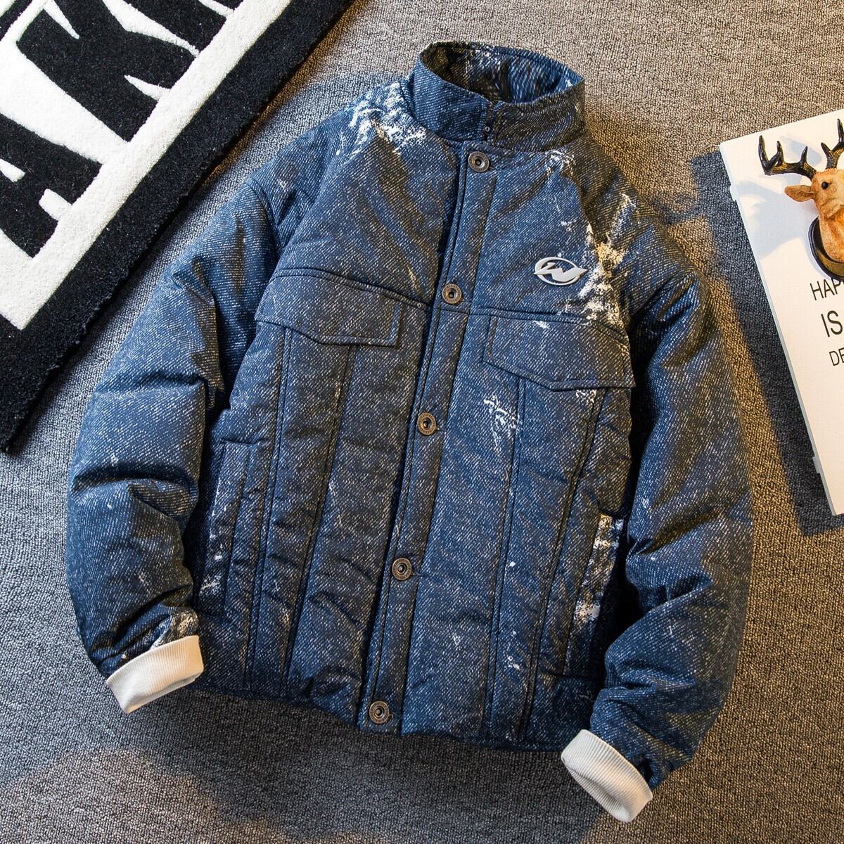 Hengpai トレンディな ese スタイルのレトロな古いスプラッシュデニムコットンジャケットメンズ秋と冬のトレンディなブランドワークウェアコットンジャケット オータム 秋物 ウィンター 冬物 3381942302798737