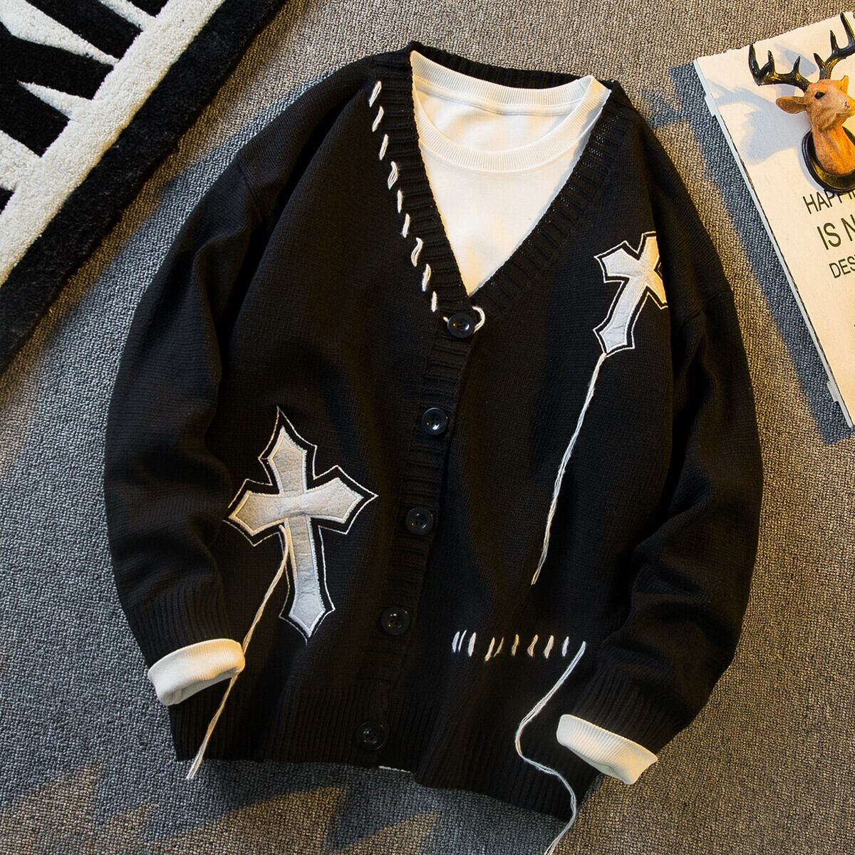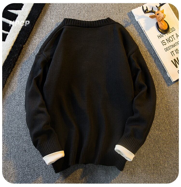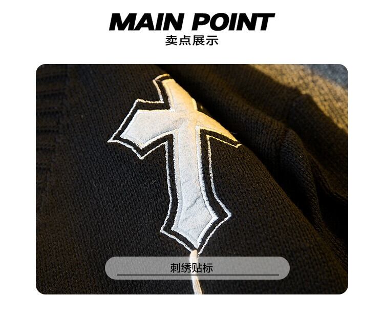 Hengpai トレンディなハイストリート ブランド黒 V ネッククロスセータージャケットメンズ秋と冬の怠惰なカーディガンセーター ブラック オータム 秋物 ウィンター 冬物 Vネック 3381991697269207
