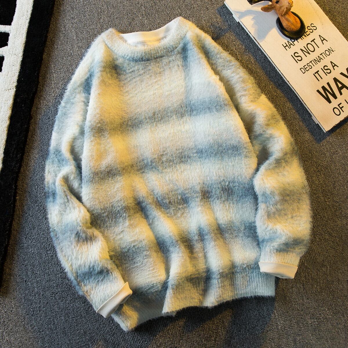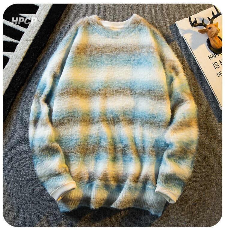 水平トレンディな秋と冬スタイルのストライプスプライシング小さな香りのよいスタイルセーター男性と女性ルーズ怠惰なハイエンドソフトワックスセーター オータム 秋物 ウィンター 冬物 3381951055434226