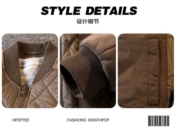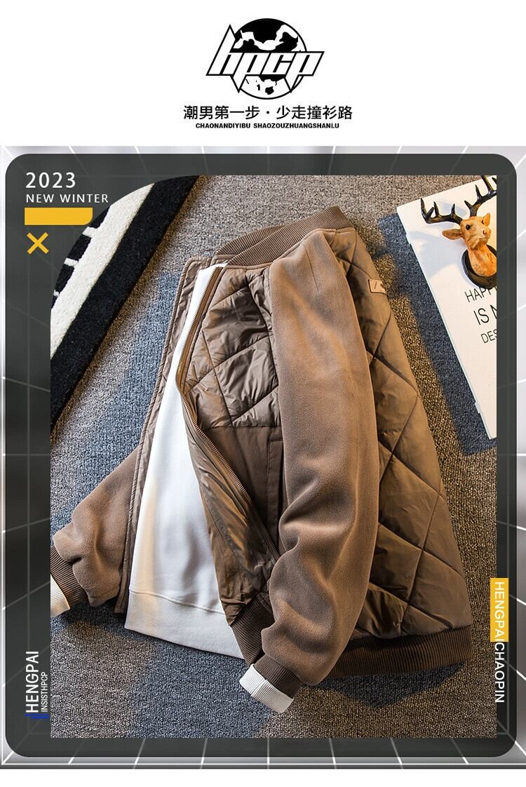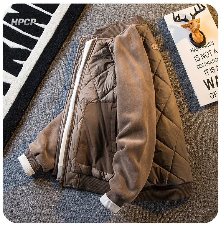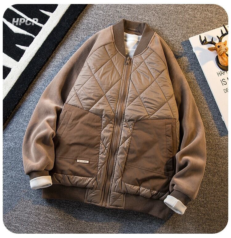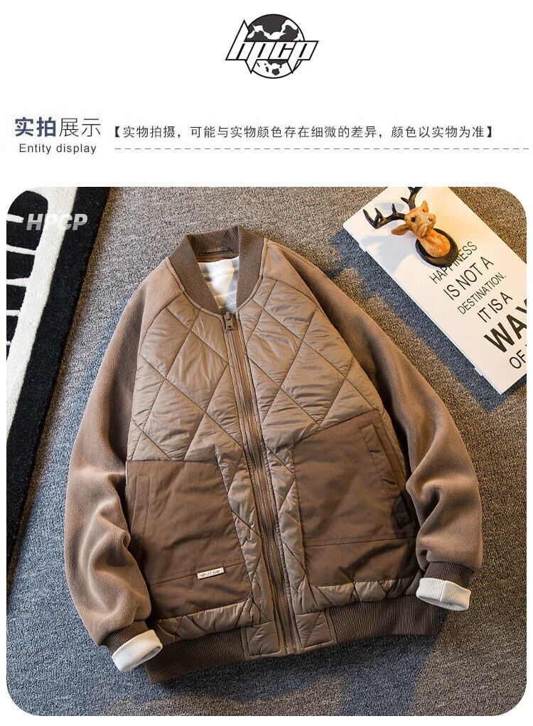 Hengpai トレンディな菱形チェック柄スプライシング綿ジャケットメンズ冬肥厚暖かい綿洗濯バサミ綿野球ジャケット コットン ウィンター 冬物 3381918841215594
