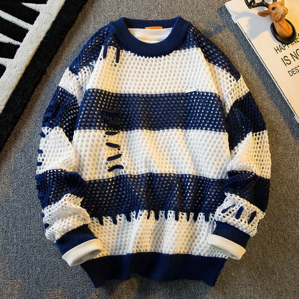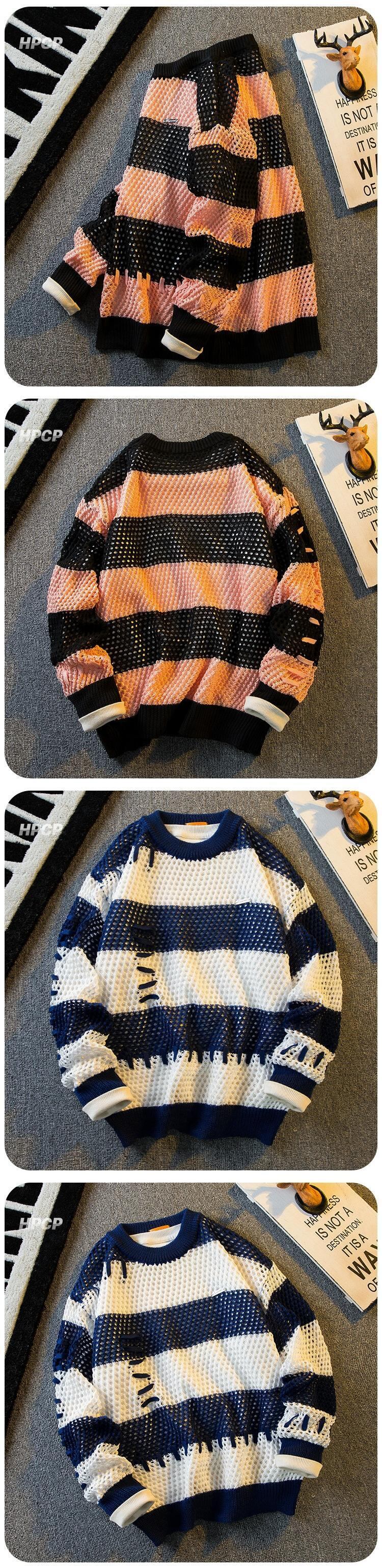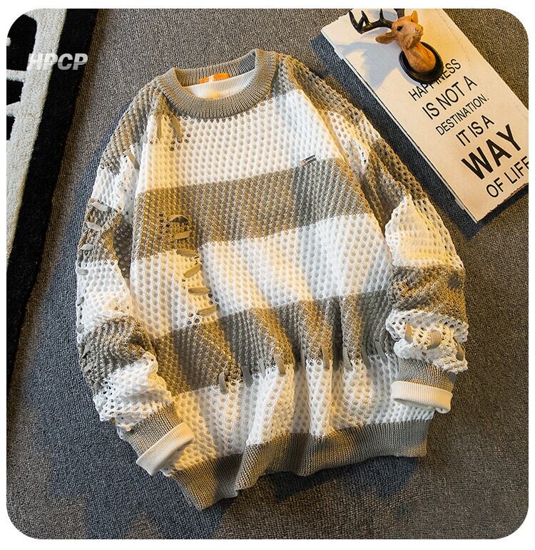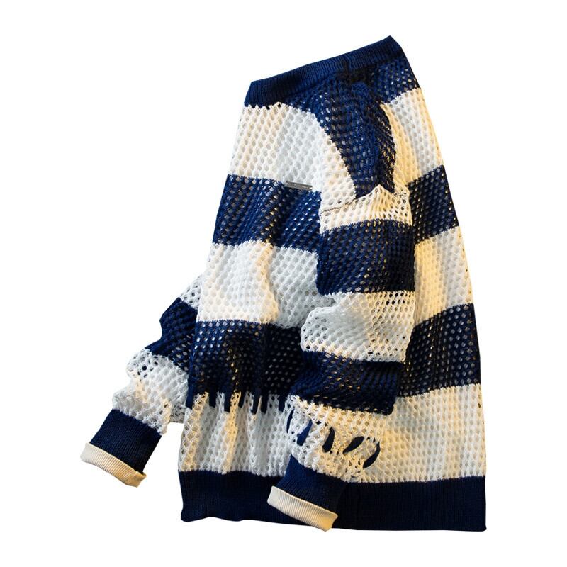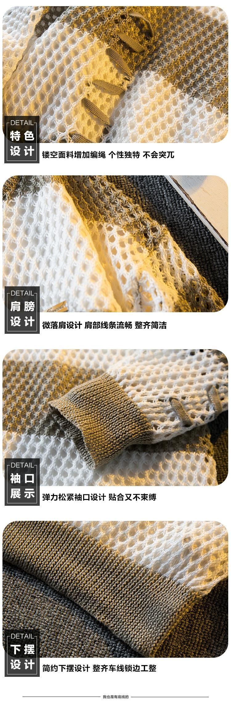 水平トレンディなファッションブランドデザインステッチ中空ストライプセーターメンズ秋冬トレンディな多目的コントラストカラーセーター オータム 秋物 ウィンター 冬物 3381935637678382