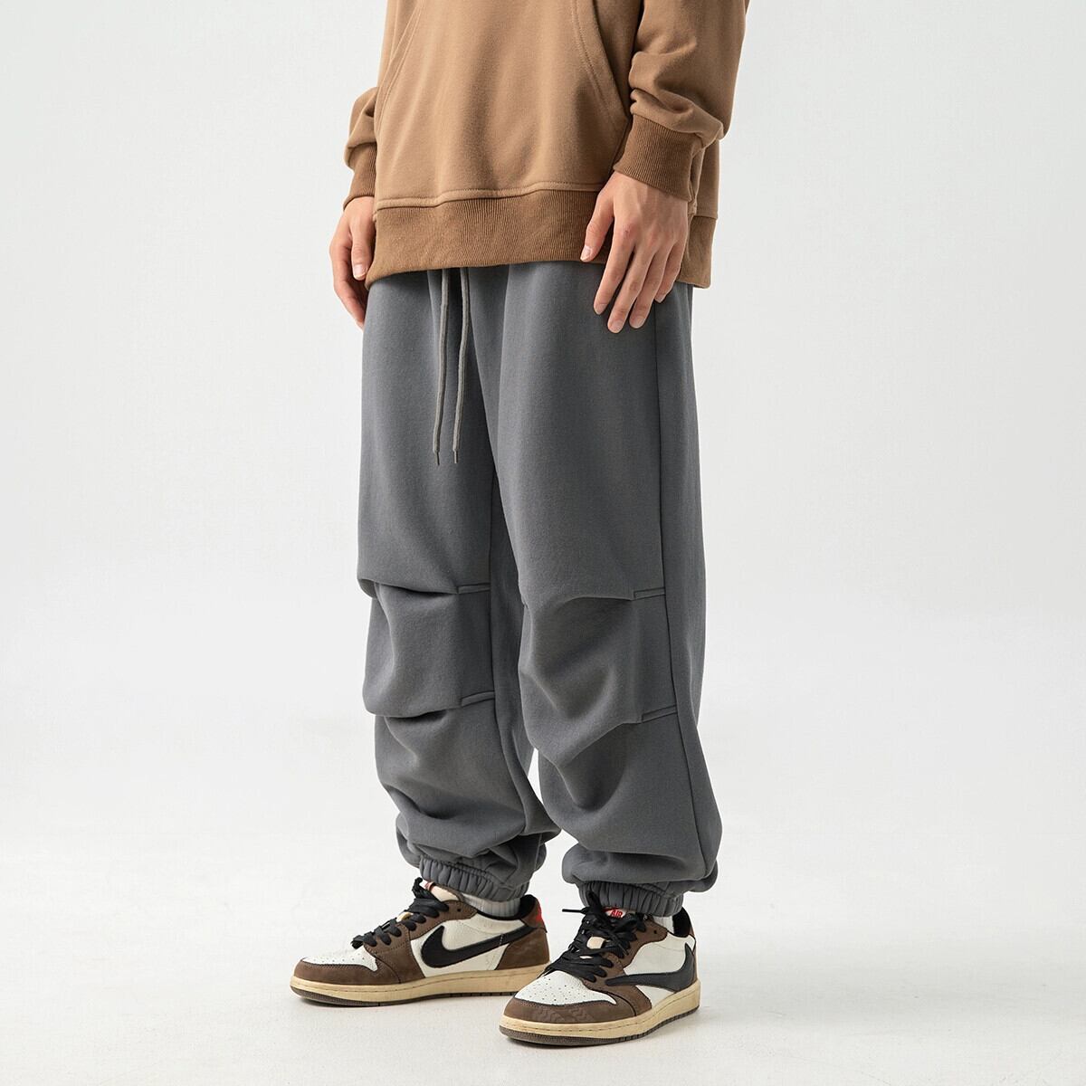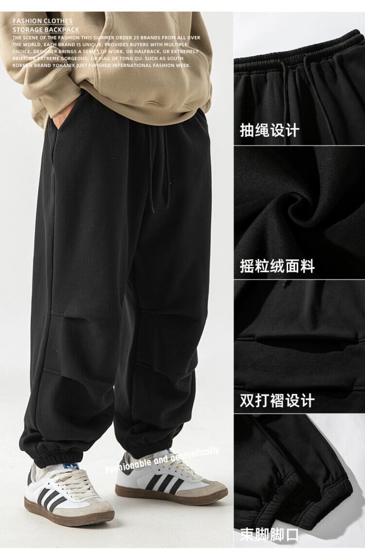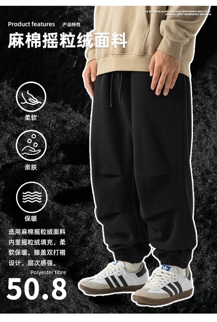 Hengpai トレンディなポーラーフリースぶら下げカジュアルスウェットパンツメンズ秋冬トレンディなブランドルーズプラスベルベット肥厚脚パラシュートパンツ オータム 秋物 ウィンター 冬物 3381960476664906