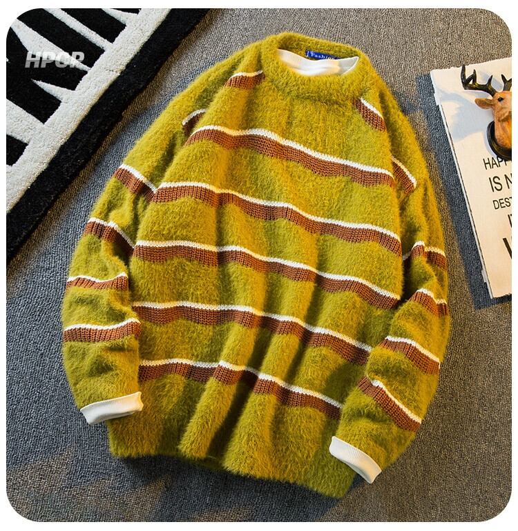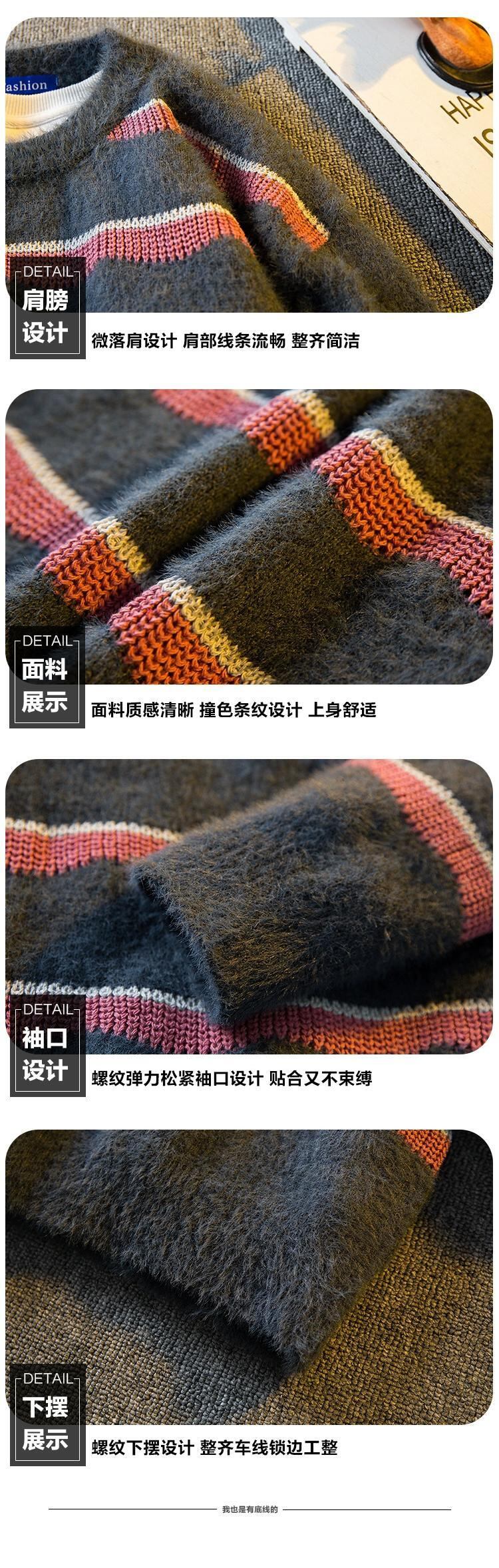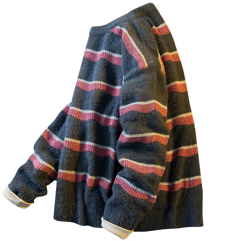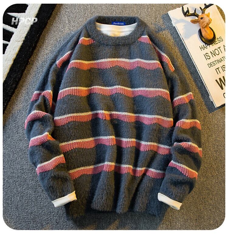 水平のトレンディなアメリカのストリート スタイルの対照的なストライプのセーター、秋と冬のカップルの男性と女性、緩い模造ミンク ベルベット セーター オータム 秋物 ウィンター 冬物 3381926675554068