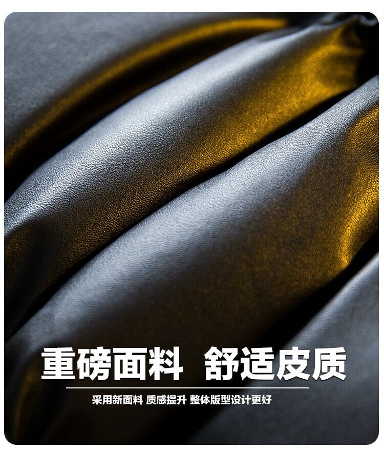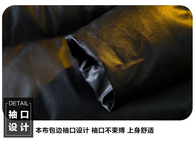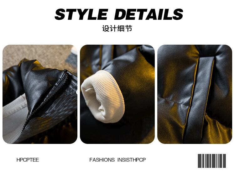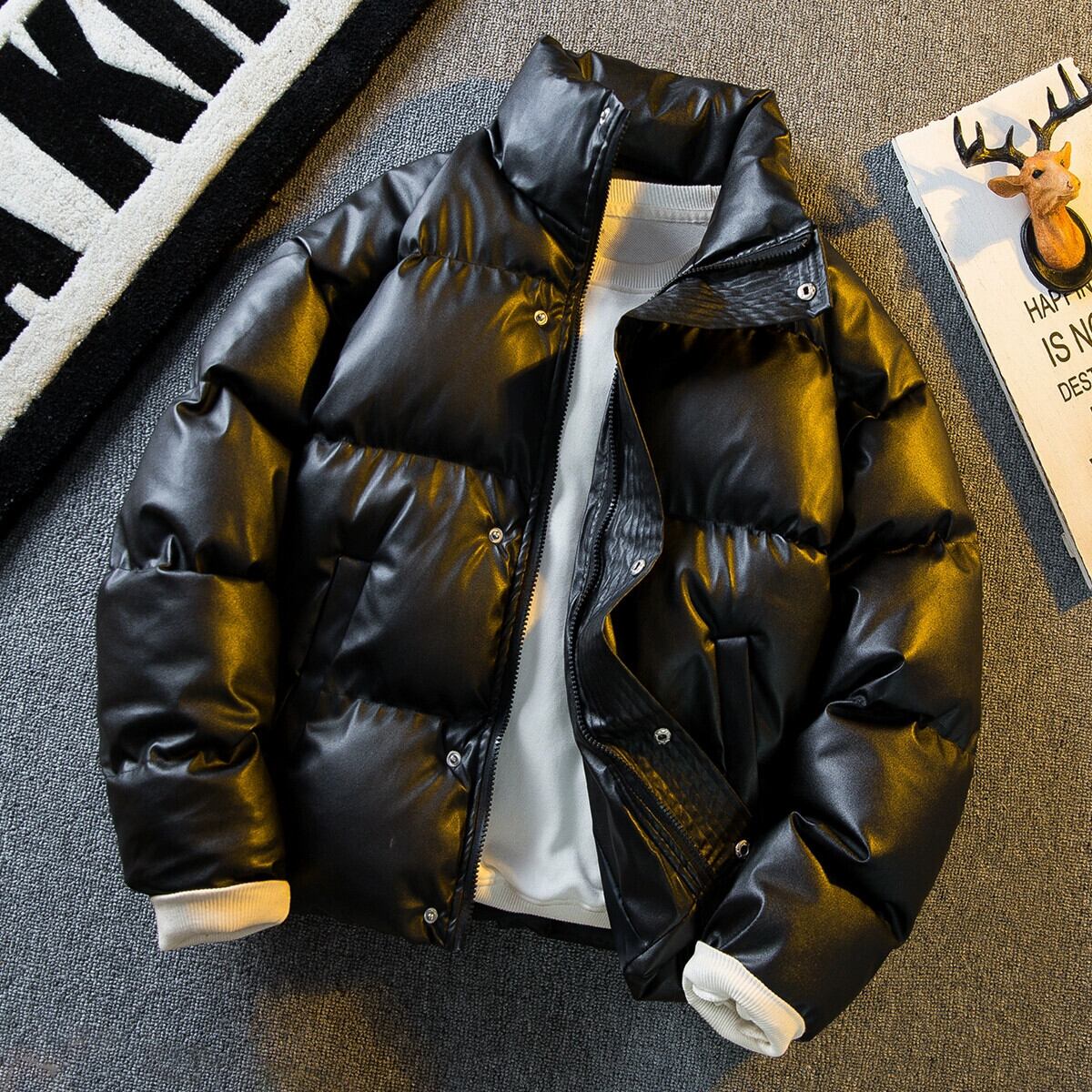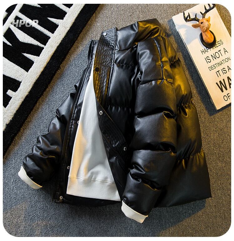 Hengpai トレンディなレトロな黒の PU レザー コットン コート メンズ 冬、厚みのあるスタンドカラー、ハンサムなショート コットン コート、防風レザー ジャケット ブラック ウィンター 冬物 33819644106300