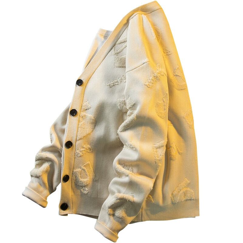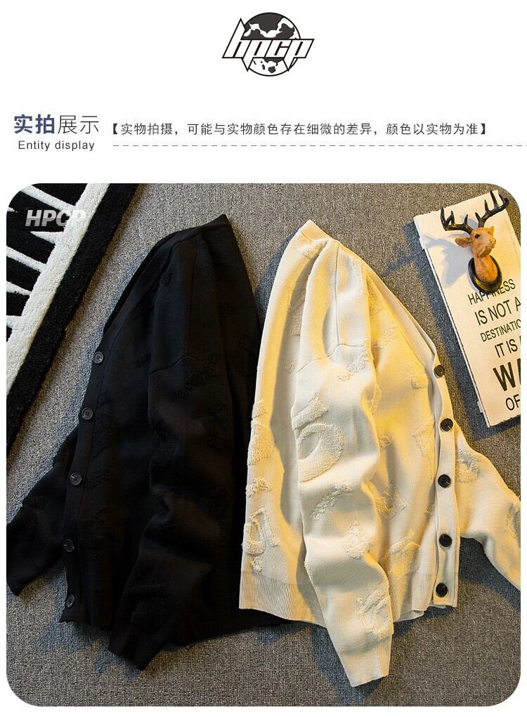 Hengpai トレンディな立体植毛ジャカード V ネックセーターセーターメンズ秋冬スタイルのトレンディなニットカーディガンジャケット オータム 秋物 ウィンター 冬物 Vネック 3381996055532222
