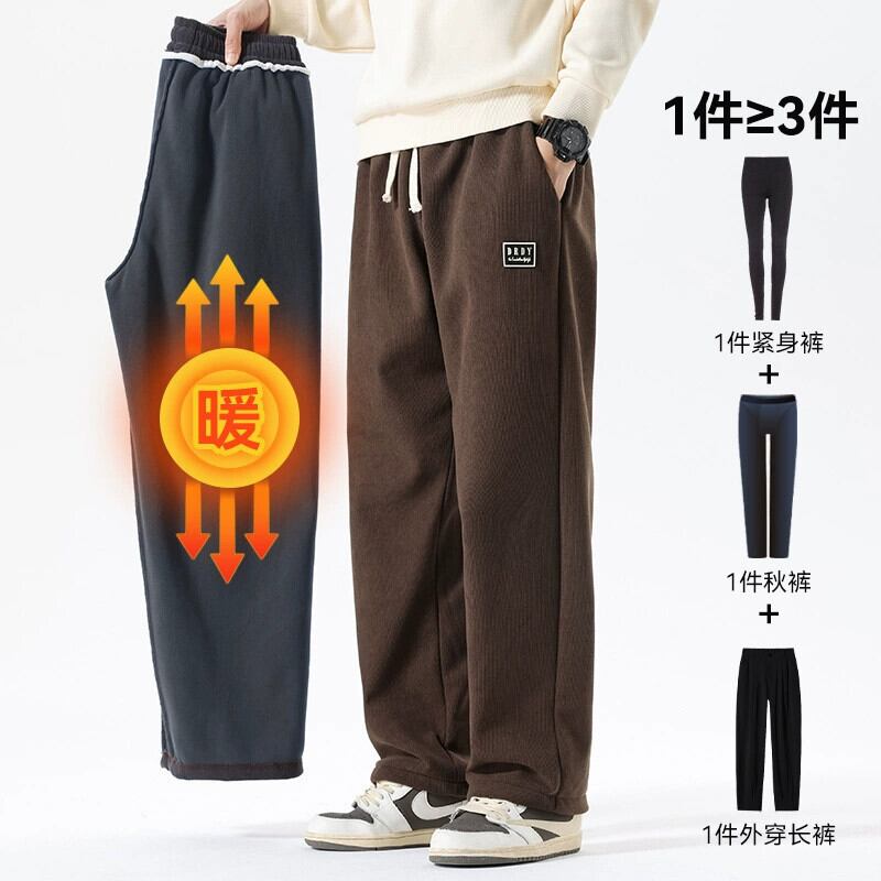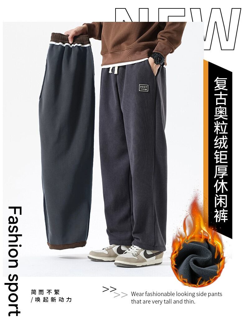 Hengpai トレンディな冬ベルベット肥厚スウェットパンツメンズルーズトレンディブランドストレートカジュアルパンツスウェットパンツメンズ秋冬スタイル オータム 秋物 ウィンター 冬物 3381946211341